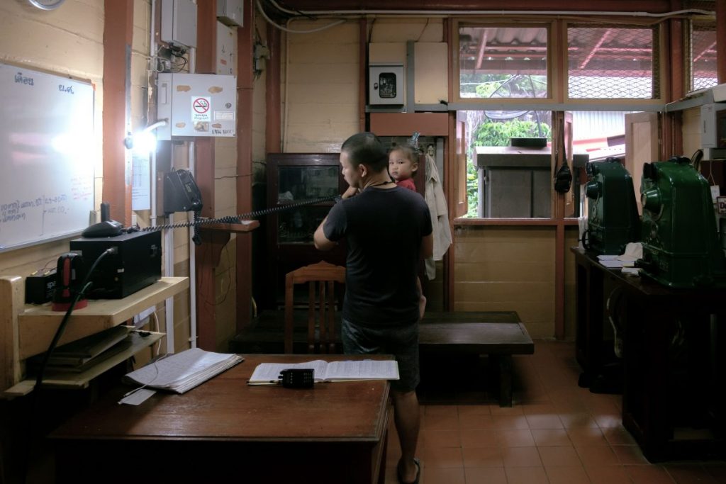 พี่ริ่ว นายสถานีรถไฟขุนตาน วัยใกล้เกษียณ ที่นั่งคุยเป็นเพื่อนเราระหว่างรอรถไฟขบวนสุดท้ายของวันนี้
