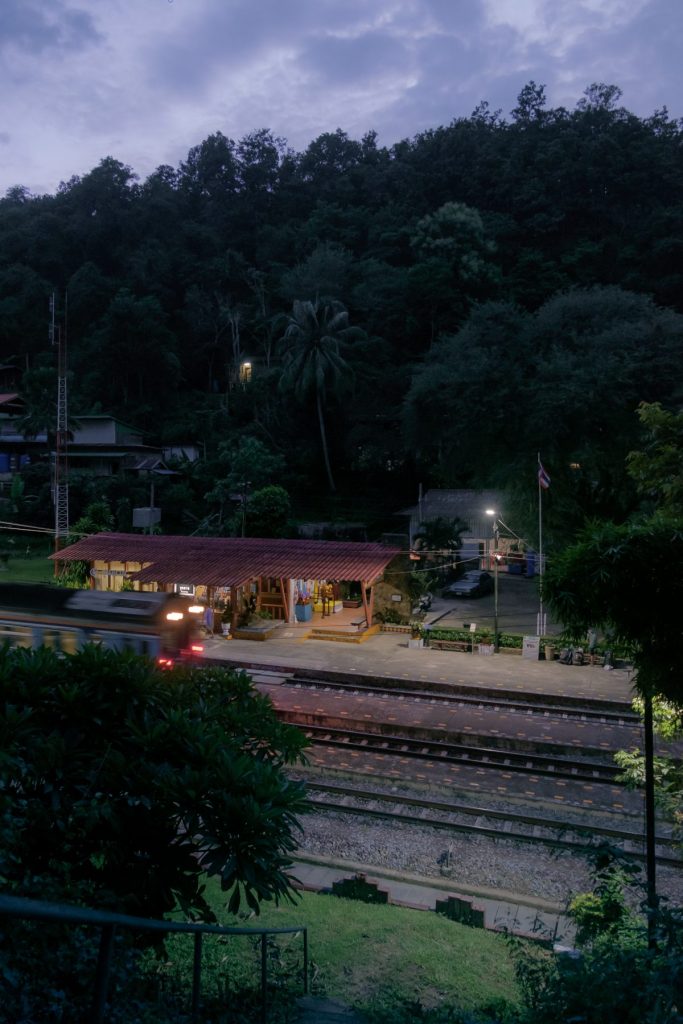 บรรยากาศสถานีรถไฟขุนตานยามค่ำคืน ก่อนที่รถไฟขบวนสุดท้ายของวันกำลังจะมา