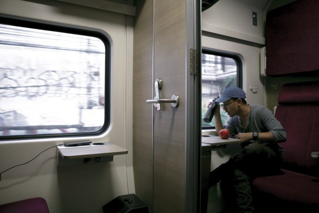 โดยการเดินทางครั้งนี้ทางทีมของเราได้รับการสนับสนุนจากการรถไฟแห่งประเทศไทย ด้วยขบวนรถด่วนขบวนพิเศษ “อุตราวิถี” ซึ่งภายในตกแต่งอย่างทันสมัย พร้อมอุปกรณ์อำนวยความสะดวกครบครัน เช่น จอ LED แบบสัมผัสเพื่อบอกพิกัดของรถไฟ ปลั๊กชาร์จไฟสำหรับอุปกรณ์อิเล็กทรอนิกส์ อ่างล้างมือ และห้องน้ำที่แยกส่วนระหว่างห้องอาบน้ำกับโถปัสสาวะ เมื่อได้มาสัมผัสบรรยากาศความทันสมัยเช่นนี้ ทำให้ผมลืมภาพจำที่เคยมีกับรถไฟไทยไปเลย เพราะการเดินทางของเราครั้งนี้สะดวกสบายมากขึ้นกว่าครั้งไหน ๆ