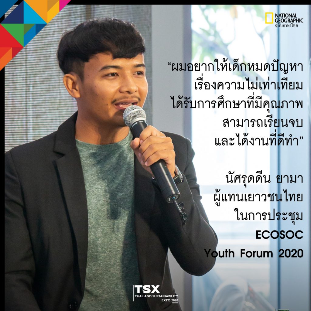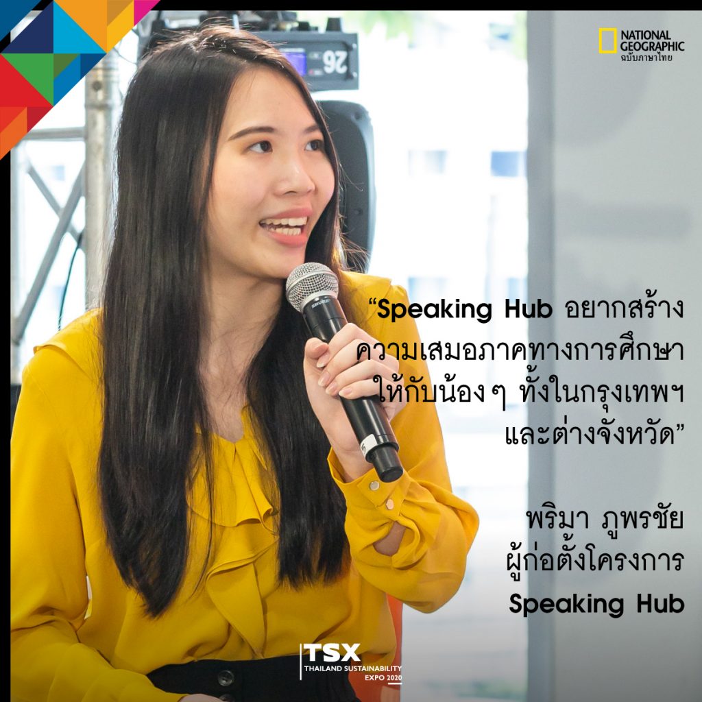 ซึ่งหนึ่งในกิจกรรมสำคัญจากงาน TSX ที่เพิ่งผ่านไป National Geographic Thailand ได้มีโอกาสร่วมฟังเสวนาในหัวข้อ “บทบาทของเยาวชนต่อการบรรลุเป้าหมายการพัฒนาที่ยั่งยืน” ที่ TSX ร่วมกับกระทรวงการต่างประเทศ ชวน 4 ผู้แทนเยาวชนไทย นำโดย พริม-พริมา ภูพรชัย ผู้แทนเยาวชนไทยในการประชุม ECOSOC Youth Forum 2019 และผู้ก่อตั้งโครงการ Speaking Hub เพื่อส่งเสริมและสอนทักษะการพูดภาษาอังกฤษให้กับเยาวชนระดับชั้นมัธยมศึกษาผ่านแอพลิเคชั่น Google Meet,