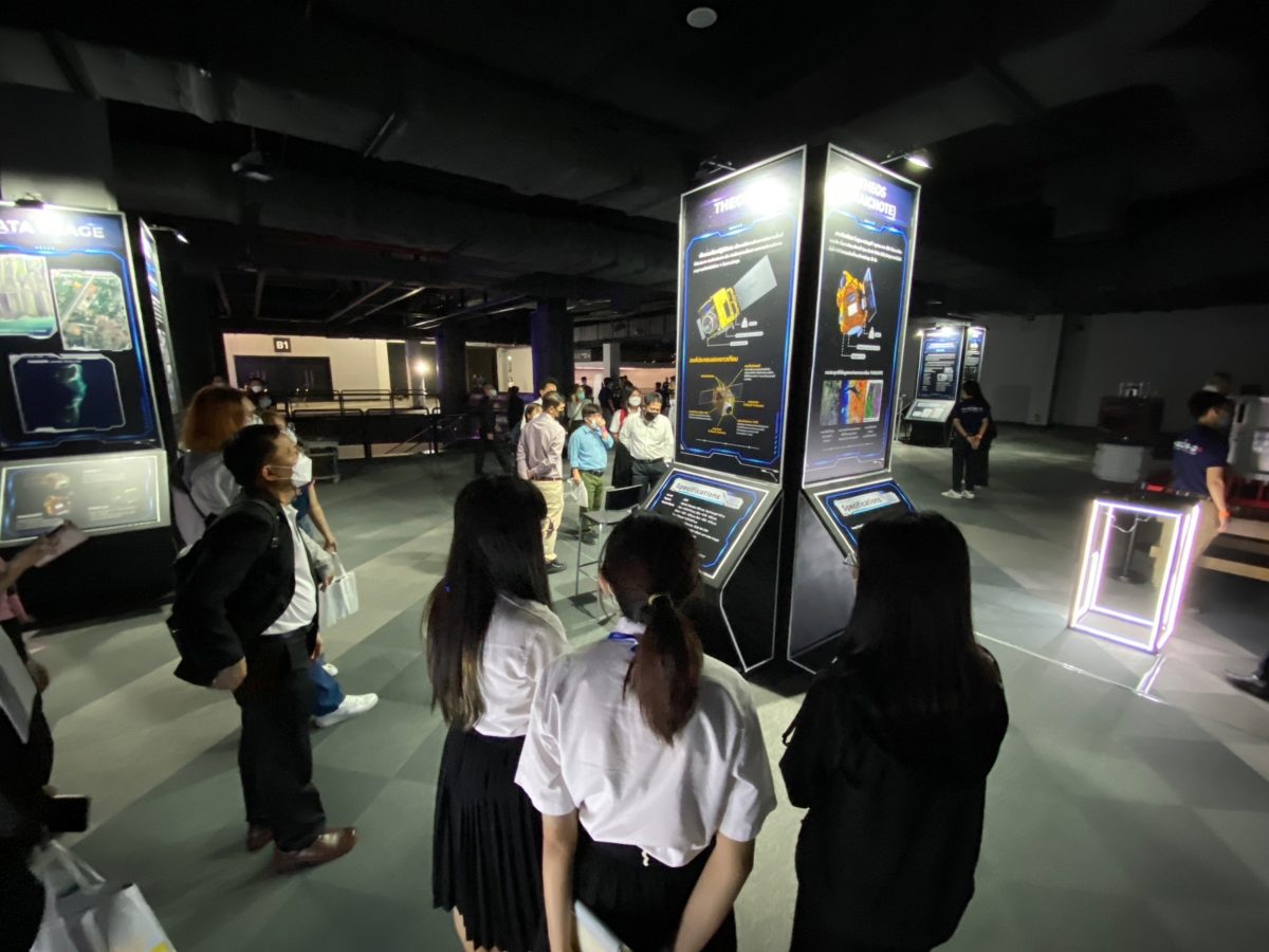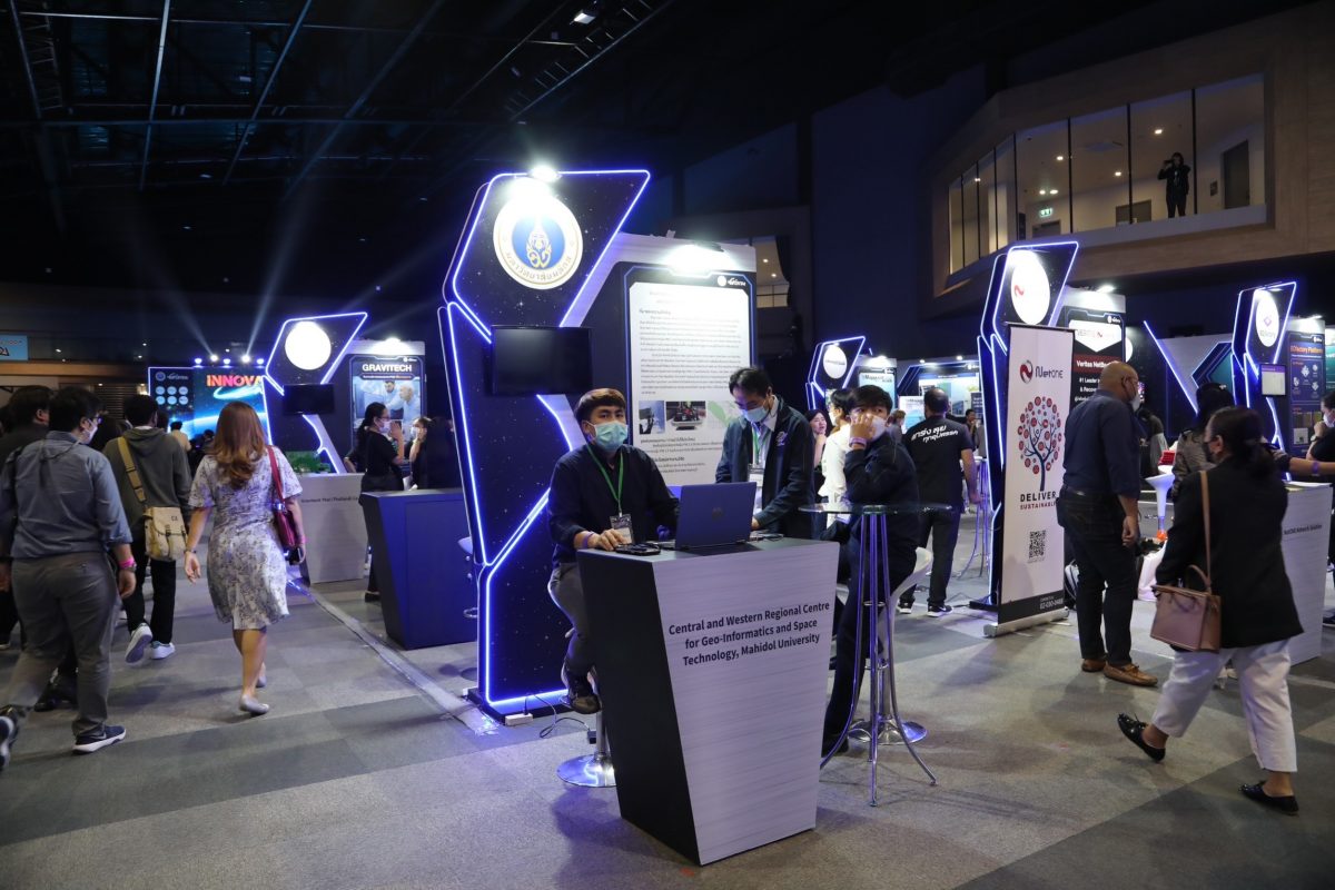 รวมถึงโซนนวัตกรรมจากศูนย์ภูมิภาคเครือข่ายมหาวิทยาลัยทั้ง 7 ศูนย์ฯ ของ สทอภ. 3) โซนแสดงผลิตภัณฑ์และบริการด้านนวัตกรรมอวกาศและภูมิสารสนเทศจากหน่วยงานภายในและต่างประเทศ เช่น Planet, Airbus, MDA, UNESCAP, i-bitz, PASCO เป็นต้น 4) โซนเวทีกลางกับเหล่า Speakers ทางด้านนวัตกรรมอวกาศและภูมิสารสนเทศทั้งในและต่างประเทศ นำโดย Mr.David Tan กรรมการบริหาร Office for Space Technology and Industry จากสิงคโปร์ ที่จะมาร่วมแลกเปลี่ยนมุมมองด้านโอกาสทางธุรกิจในอุตสาหกรรมอวกาศแห่งอนาคต, การเสวนาความพร้อมของโครงสร้างพื้นฐานในด้านอวกาศ โดย ตัวแทนจาก GISTDA/ Mu Space/ กองทัพอากาศ และไทยคม, การเสวนาด้านน้ำโดยทีมพัฒนานวัตกรรมด้าน AIP