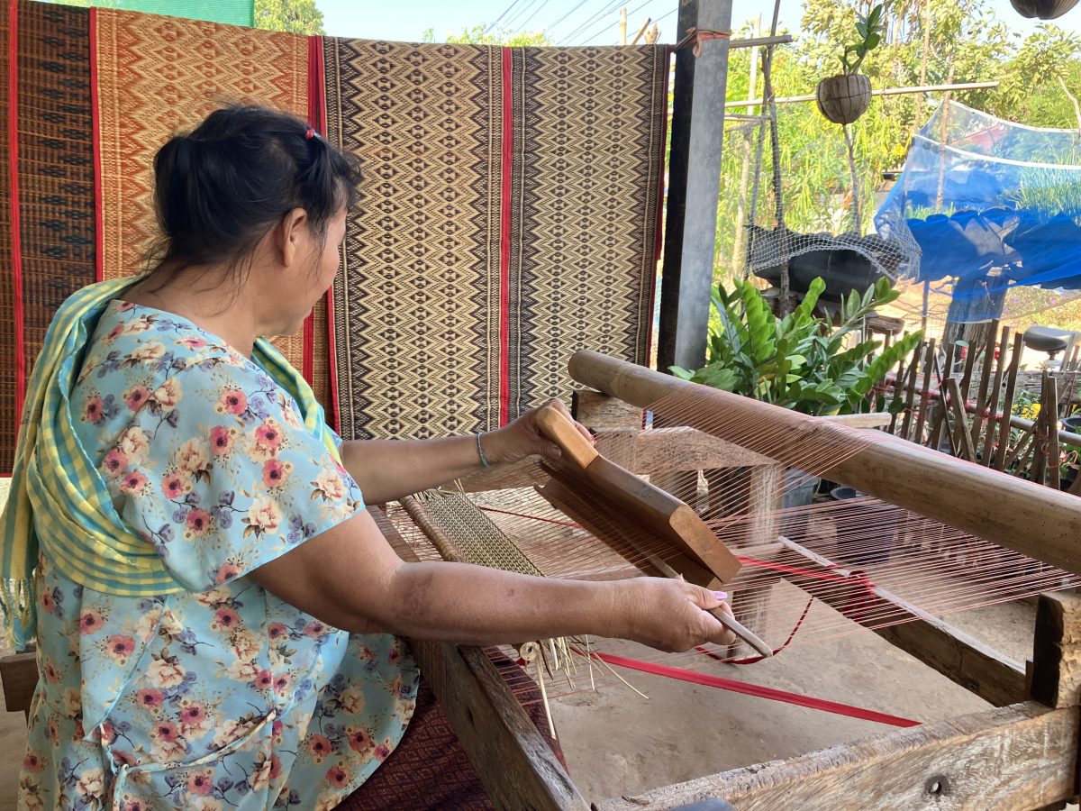 จากนั้นเดินต่อไปยังจุดทอผ้าปีกนก โดยมีลักษณะคล้ายปีกของนกนั้นเอง ยังมีลายกังหันลม และลายอื่น ๆ แน่นอนว่าความยากนั้นเริ่มมากขึ้นและใช้ความชำนาญในการจดจำมากขึ้นกว่าเดิม เพราะต้องใช้ทั้งมือและเท้าทั้งสองข้างในการทอผ้า การเปลี่ยนกระสวยไปมา และการจดจำตำแหน่งของการเปลี่ยนลาย กว่าที่แม่ ๆ จะทอได้แต่ละผืนนั้นไม่ง่ายเลย การทอผ้าแต่ละผืนต้องใช้เวลา และเป็นหนึ่งในผลิตภัณฑ์ของชุมชน