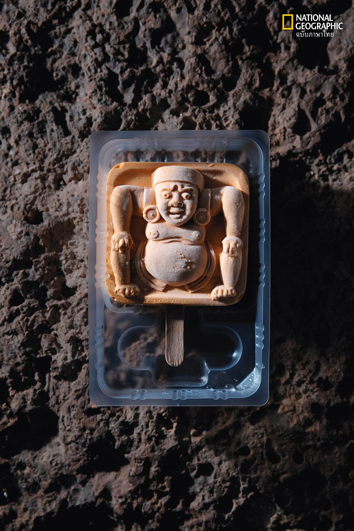 ภาพปูนปั้นประดับฐานเขาคลังในนี้เอง เมื่อไม่นานมานี้ ถูกนำไปเป็นต้นแบบลวดลายบนแท่งไอศกรีมหลากสีสารพัดรสชาติ ตั้งร้านรอต้อนรับผู้มาเยือนใกล้ๆ จุดจำหน่ายบัตรเข้าชม จนแทบกลายเป็นสัญลักษณ์ใหม่สำหรับการท่องเที่ยว เมืองโบราณศรีเทพไปแล้ว