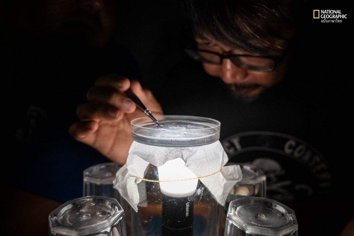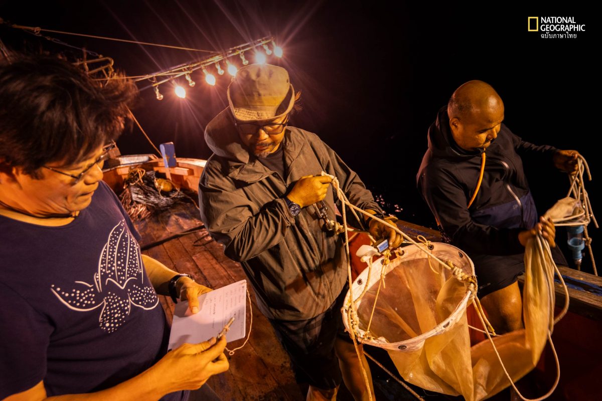 จิระพงศ์ จีวรงคกุล นักวิชาการโครงการพัฒนาทางทะเลและชายฝั่ง มูลนิธิเอ็นไลฟ์ ผู้เชี่ยวชาญด้านปลาทะเลของเมืองไทย เป็นนักวิชาการคนสำคัญประจำการสำรวจครั้งนี้ เพราะนอกจากจะทำหน้าที่จำแนกชนิดปลาและตัวอ่อนสัตว์น้ำที่พบ เขายังทำหน้าที่เก็บตัวอย่างสัตว์น้ำในบริเวณที่มีการใช้แสงไฟล่อ เพื่อแสดงให้เห็นถึงอิทธิพลของแสงไฟ