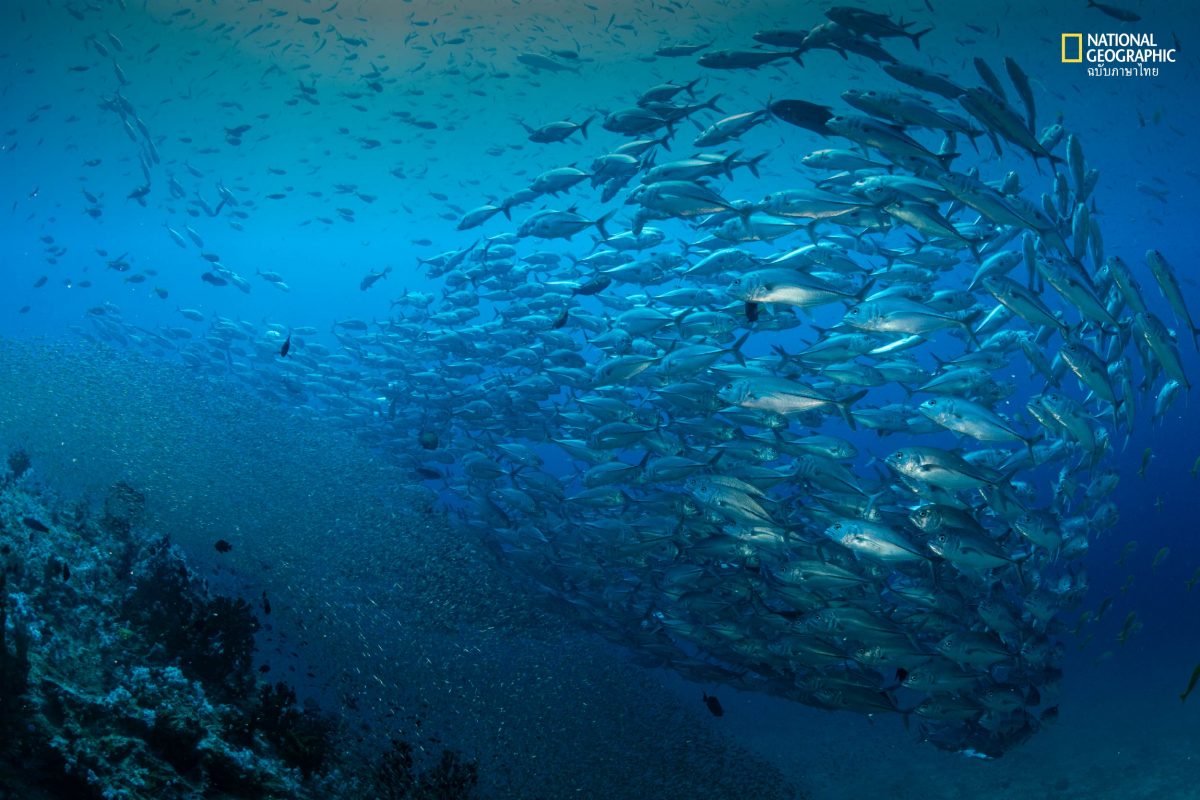 เมื่อทีมงานพร้อม ไต๋เรือใช้เทคนิคหรี่แสงไฟลงเพื่อดึงให้ฝูงปลาขึ้นมาสู่ผิวน้ำจากระดับความลึกกว่า 50 เมตร แต่ปรากฏว่าแสงไฟจากทีมช่างภาพมีความสว่างไม่น้อย ฝูงปลาขนาดใหญ่จึงไม่ขึ้นมาสู่ผิวน้ำอย่างที่คาดการณ์ แต่ทีมสำรวจยังพบสิ่งมีชีวิตหลากหลายกลุ่มโดยเฉพาะหมึก และลูกปลาหลายชนิดในกลุ่มปลาขี้ตังเบ็ด (Acanthurus) ปลาจุ้ยจิน (Atropus) ในกลุ่มปลาหางแข็ง ปลากะมงในสกุล Caranx ปลาหมูสีในสกุล Lethrinus รวมไปถึงปลาเก๋าในสกุล Epinephelus ซึ่งปลาหลายชนิดเมื่อโตเต็มที่นับเป็นปลาเศรษฐกิจที่มีมูลค่าตลาดสูงมาก