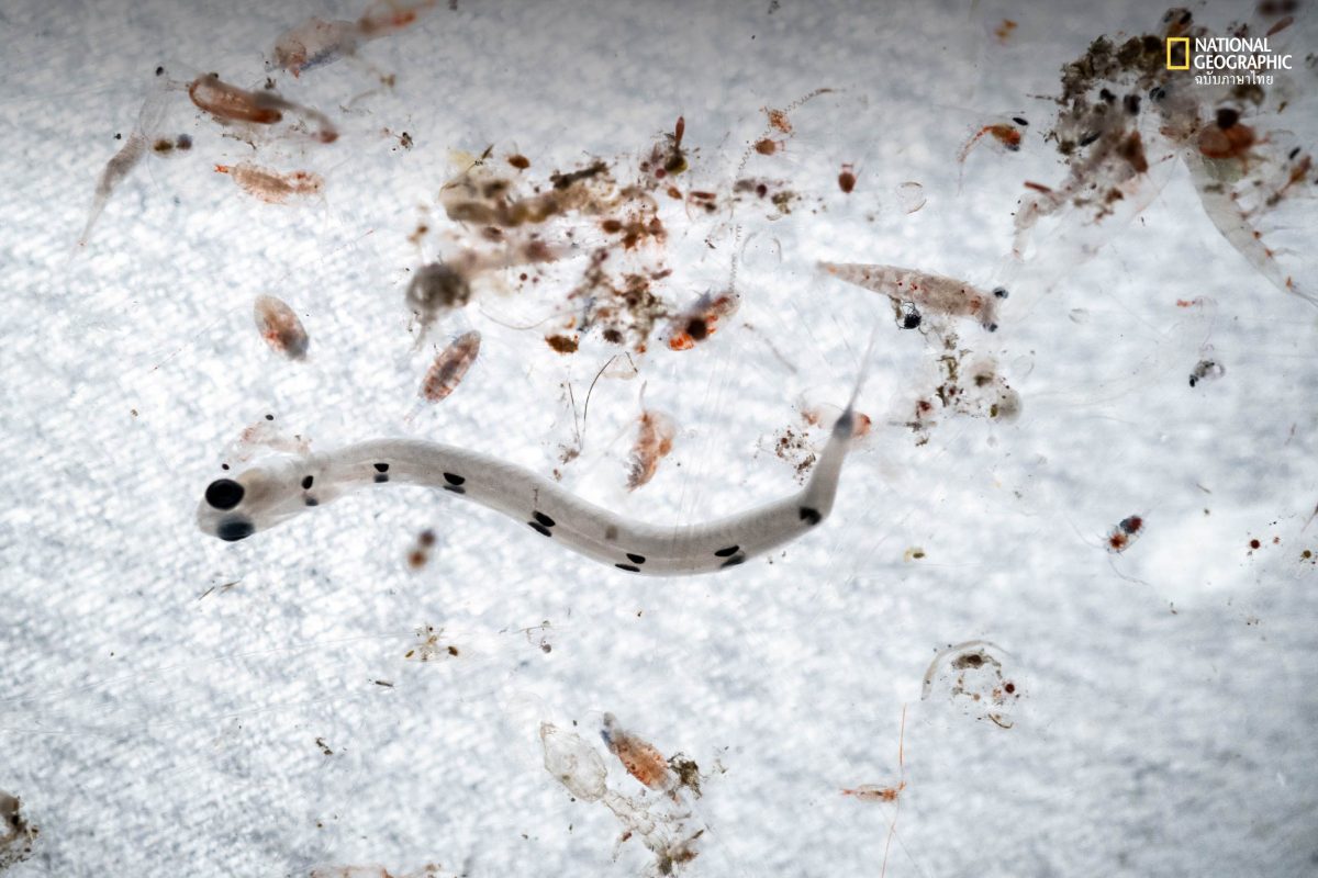 คืนแรกของการสำรวจ วัชระทำการจัดไฟเพื่อล่อสิ่งมีชีวิตใต้น้ำในลักษณะ Bonfire คือห้อยไฟท้ายเรือไล่ระดับจนไปถึงระดับความลึกประมาณ 22 เมตร จิระพงศ์และผมรับผิดชอบเก็บตัวอย่างสัตว์น้ำจากท้ายเรือที่มีแสงไฟล่อ เพื่อนำไปจำแนกชนิดอย่างละเอียดต่อไป ขณะที่ทีมช่างภาพนำโดยนัท ลงไปบันทึกภาพนิ่งและภาพเคลื่อนไหว เราพบสัตว์น้ำวัยอ่อนหลากหลายชนิด โดยเฉพาะกุ้ง ปู และปลาหลายชนิด สัตว์น้ำวัยอ่อนมีรูปร่างลักษณะเฉพาะซึ่งมีความน่าสนใจ และยังเป็นข้อมูลที่ยังขาดแคลนอยู่มาก จะว่าไปการเก็บข้อมูลเหล่านี้นับเป็นจิกซอว์สำคัญที่จะช่วยให้เราเข้าใจความเชื่อมโยงของระบบนิเวศทางทะเลมากขึ้น และสามารถวางแผนจัดการการใช้ประโยชน์ได้อย่างมีประสิทธิภาพ กว่าจะเสร็จภารกิจคืนแรกก็ล่วงเลยเวลาเกือบสองนาฬิกาของวันใหม่