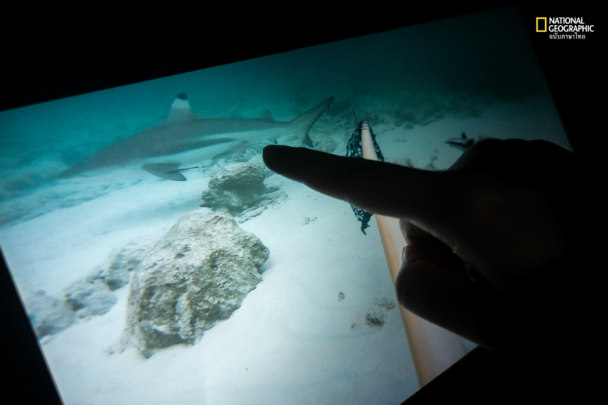 “ซึ่งข้อมูลที่เราได้จากกล้องใต้น้ำ (BRUVS – Baited Remote Underwater Video Stations) และโดรนบอกเราว่า มีฉลามครีบดำไม่ต่ำกว่า 100 ตัวอาศัยอยู่ในอ่าว ซึ่งเราสามารถระบุอัตลักษณ์ของฉลามได้ 32 ตัว”