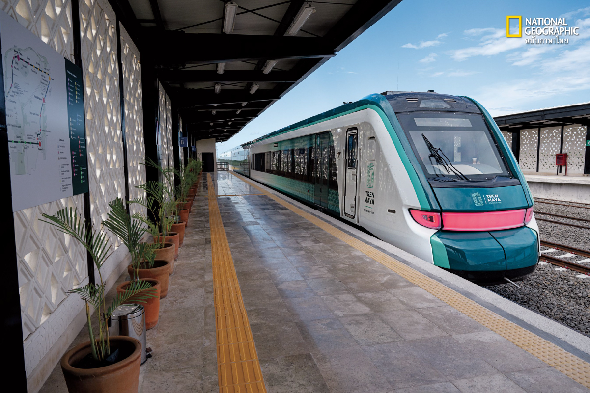 ขบวนรถไฟเตรนมายาเคลื่อนเข้าสู่สถานี เครื่องปรับอากาศทำงานเย็นฉ่ำ ภายในรถไฟสะอาดสะอ้าน สถานีปลายทางแคนคูน ทั้งผนังโค้งมันวาวและกระถางที่เต็มไปด้วยพืชพรรณ อธิบายได้ว่าทำไมโครงสร้างพื้นฐานนี้จึงเป็นโครงการแพงที่สุดโครงการหนึ่งในประวัติศาสตร์เม็กซิโกสมัยใหม่ ระบบรถไฟนี้เปิดบริการเต็มรูปแบบเมื่อเดือนธันวาคม ปี 2024 โดยใช้งบประมาณไปร่วม 30,000 ล้านดอลลาร์สหรัฐ และสร้างเส้นทางวนอ้อมใหญ่โตรอบคาบสมุทรยูกาตัน นั่นคือทางรถไฟยาว 1,554 กิโลเมตร มี 34 สถานี และรถไฟกว่าสามสิบขบวนที่วิ่งขึ้นล่องด้วยความเร็วสูงถึง 160 กิโลเมตรต่อชั่วโมง รางรถไฟบางส่วนอยู่บนสะพานยกระดับที่รองรับด้วยเสาเหล็กอัดปูนซีเมนต์ทาสีขาวไม่ให้สะดุดตา