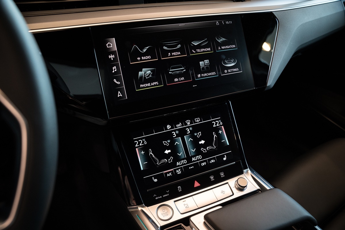 ราคาจำหน่าย 5,099,000 บาท Audi ค่ายรถยนต์หรูค่ายแรกที่หันมาลงตลาดกลุ่มรถยนต์ไฟฟ้าในไทย ติดตั้งมอเตอร์ไฟฟ้าขับเคลื่อนจำนวน 2 ตัว ให้กำลังสูงสุด 360 แรงม้า แรงบิดสูงสุด 561 นิวตัน-เมตร อัตราเร่ง 0-100 กิโลเมตรในเวลา 6.6 วินาที พร้อมบูสต์โหมดที่เพิ่มกำลังสูงสุดเป็น 408 แรงม้า และแรงบิด 664 นิวตัน-เมตร ส่งกำลังด้วยเกียร์อัตโนมัติแบบ Single Gear สามารถทำอัตราเร่ง 0-100 กิโลเมตรต่อชั่วโมงให้เหลือเพียง 5.7 วินาที และทำความเร็วสูงสุดได้ 200 กิโลเมตรต่อชั่วโมง ขณะที่แบตเตอรี่เป็นแบบลิเธียม-ไอออน ขนาด 95 กิโลวัตต์ชั่วโมง สามารถขับขี่ได้เป็นระยะทางประมาณ 417 กิโลเมตร (ตามมาตรฐาน WLTP) ต่อการชาร์จเต็มแต่ละครั้ง (เว็บไต์ Audi Thailand)