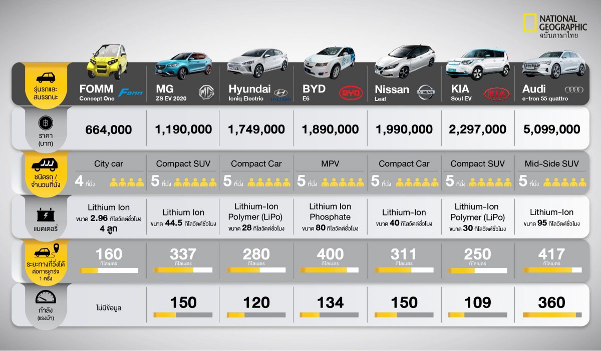 รถยนต์ไฟฟ้า (EV) ที่วางขายจริงในประเทศไทย ณ ปัจจุบัน