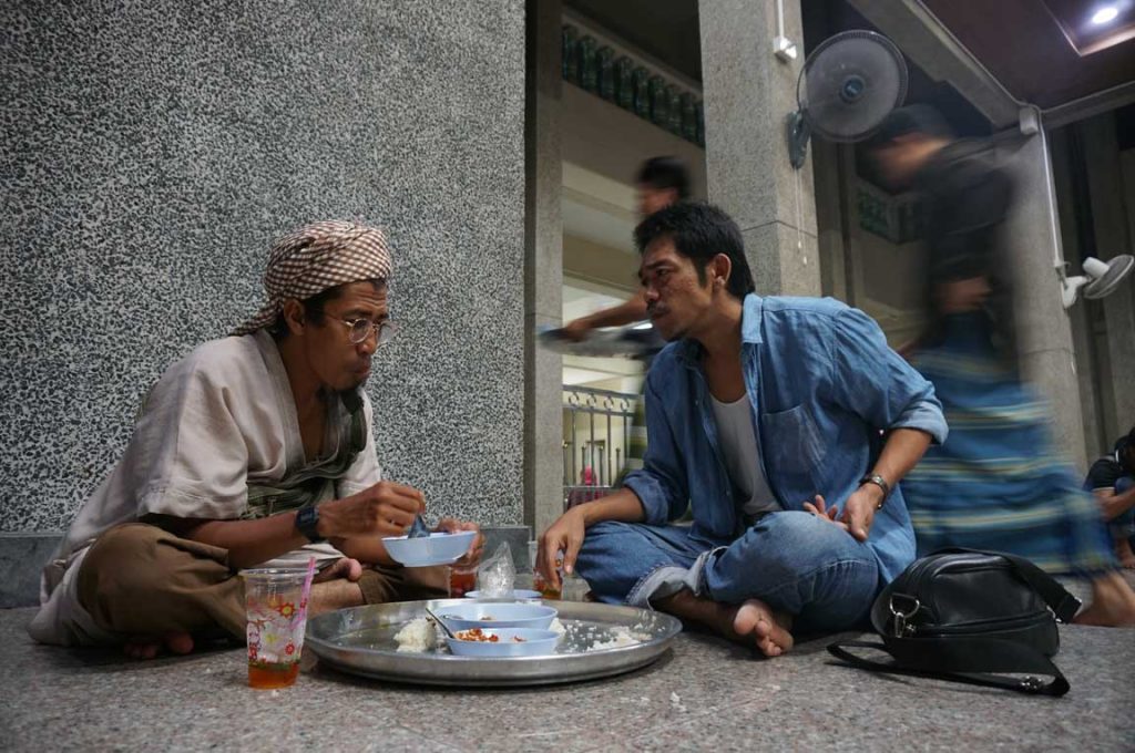และแล้วก็ได้เวลาละศีลอด ผมนั่งทานอาหารร่วมโต๊ะกับชาวมุสลิมหลากหลายเชื้อชาติทั้งคนไทย, บังกลาเทศ และปากีสถาน รู้สึกเขินอายกับการเป็นคนนอกศาสนาคนเดียวในสถานที่แห่งนี้ ความที่ผมเป็นคนแปลกหน้า เป็นเรื่องช่วยไม่ได้ที่ทุกสายตาจะจับจ้องมาแต่ระหว่างที่ผมรู้สึกถึงความเป็นคนอื่น กลับมีความอบอุ่นในฐานะแขกของพวกเขา ผมเริ่มเข้าใจแล้วว่าการละศีลอดร่วมกันที่มัสยิดมันดีกว่าการละศีลอดคนเดียวยังไง บรรยากาศของการพบปะเพื่อนฝูง และความเป็นน้ำหนึ่งใจเดียวกันในชุมชน ช่วยให้มื้ออาหารมื้อนี้มีความหมายและน่าจดจำ