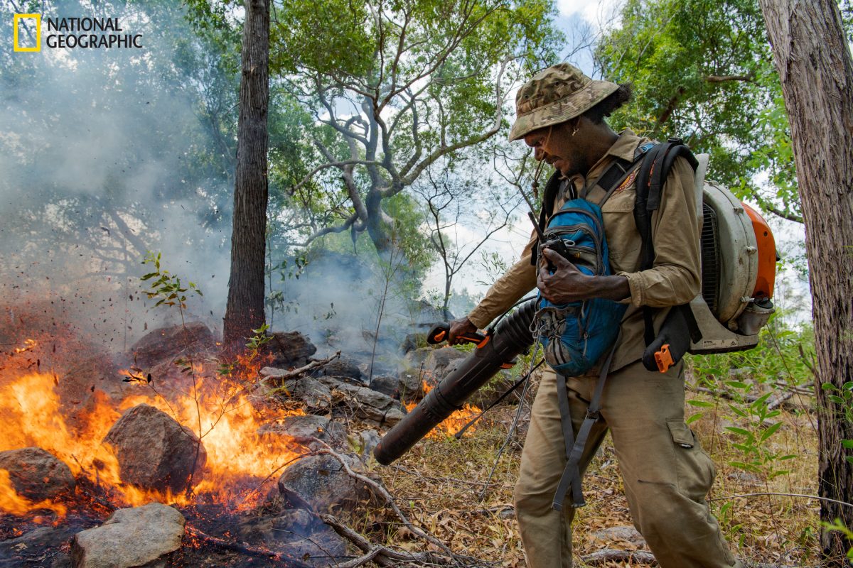 ในช่วงอากาศเย็นตอนต้นฤดูแล้งของออสเตรเลียเหนือ เมื่อความชื้นอ้อยอิ่งอยู่เหนือพื้นดิน นาบาร์ลัมบาร์ลกับสหายเจ้าหน้าที่พิทักษ์ป่าไม่รบรากับไฟป่า แต่จะจุดไฟชิง เผาป่า กันแทน จากเดือนเมษายนถึงกรกฎาคมของทุกปี เจ้าหน้าที่พิทักษ์ป่าจะออกเดินหลายร้อยกิโลเมตรโดยใช้คบจุดไฟ (drip torch) เผาผืนดิน และดำเนินการชิงเผา (prescribed burn) จากทางอากาศ โดยการโปรยวัสดุจุดไฟจากทางอากาศลงมาจากเฮลิคอปเตอร์