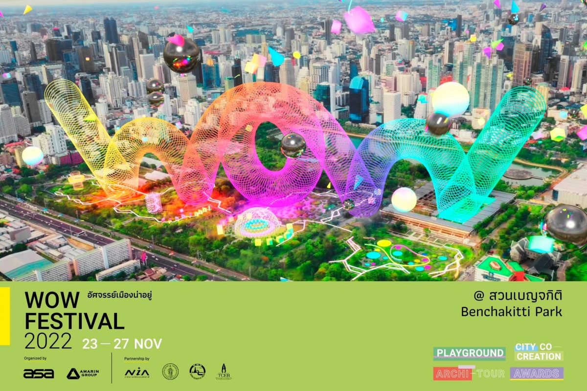 งาน WOW 2022 “อัศจรรย์เมืองน่าอยู่” จะจัดขึ้นระหว่างวันที่ 23-27 พฤศจิกายนนี้ เวลา 10.00-22.00 น. ณ สวนเบญจกิติ เขตคลองเตยกรุงเทพฯ และเปิดโอกาสให้ผู้เข้าร่วมงานได้สัมผัส และสามารถติดตามรายละเอียดได้ที่ https://www.facebook.com/ASAWOW