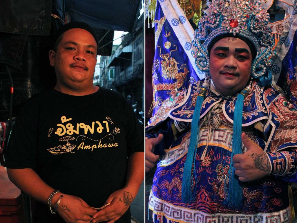 “ผมเล่นงิ้วมาตั้งแต่อายุ 15 ครับ ตอนนี้เล่นมา 18 ปีแล้ว เริ่มต้นจากการเป็นจับกังมาช่วยเขาแบกของขนของหลังเวที พอมาเห็นเขาเล่นแล้วก็รู้สึกอยากเป็นแบบเขาบ้าง เล่นงิ้วต้องฝึกเสียง ฝึกท่าทาง ทุกวันนี้ก็ยังฝึกฝนอยู่ตลอด ความสนุกของอาชีพนี้คือบทบาทที่เราได้รับมันหลากหลาย มันเปลี่ยนไปตามเรื่องราว โศกเศร้า เฮฮา เราได้แสดงหมด สมัยก่อนคนดูเยอะกว่านี้ครับ ทุกวันนี้วิชางิ้วถอยลงเรื่อยๆ ศาสตร์ของความเป็นงิ้ว หลักวิชาของมันค่อยๆ จางหายไป เด็กรุ่นใหม่เองที่เข้ามาฝึกก็ไม่ได้ตั้งใจฝึกหัดจริงๆ เพราะไม่ได้มองคุณค่าของงิ้วเท่าคนรุ่นก่อน”