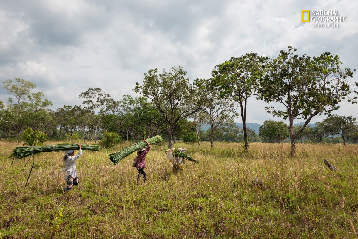 แม้ว่าผมเคยมาที่นี่หลายครั้งแล้ว แต่ก็อยู่แค่บริเวณบึงน้ำที่ชาวประมงนำเรือมาจอดหลบคลื่นลมมรสุม ครั้งนี้เราเดินลึกเข้าไปตามทางเดินเท้าเล็ก ๆ ลุยไปตามร่องน้ำ ฝ่าดงหญ้าสูงท่วมหัวจนมาถึงเขตป่า จุดหมายของเรา คือดงต้นเตยพรุ วันนี้ป้าจะมาตัดเตยเพื่อนำไปสานเป็นตะกร้าตามที่ลูกค้าโรงแรมสั่งมาและใช้เองที่บ้าน แม้ทั้งสามจะตัวเล็กและอยู่ในวัย 60 ปีแล้ว แต่ก็ตัดต้นเตยขนาดสูง 4-5 เมตรได้อย่างคล่องแคล่ว เมื่อตัดได้จำนวนมากพอแล้ว ทั้งสามก็ขนเตยที่มัดรวมกันด้วยเถาวัลย์กลับไปที่บ้านในชุมชนบางสัก บ้านเกิดของพวกเขา