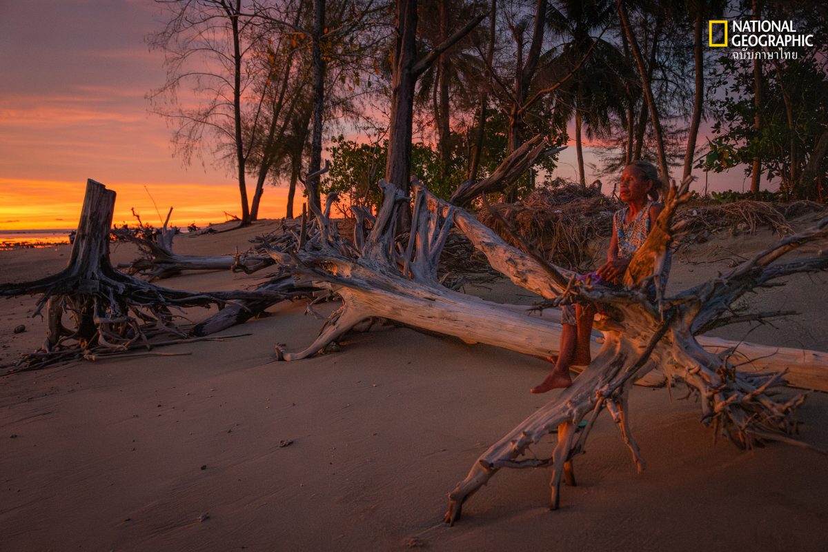 เราแวะนั่งพักบนขอนไม้ที่ล้มระเนระนาดอยู่บนชายหาด ผมจำได้ว่าครั้งแรก ๆ ที่มาหัวกรัง ต้นไม้เหล่านี้ยังยืนต้นอยู่ แต่ในช่วงหลายปีที่ผ่านมากระแสน้ำบริเวณหาดบางสักเปลี่ยนทิศ ชายฝั่งทะเลถูกคลื่นกัดเซาะเข้ามาลึกจนต้นไม้โค่น สภาพธรรมชาติบริเวณหัวกรังกำลังเปลี่ยนไปอีกครั้งหลังจากเหตุการณ์สึนามิเมื่อ พ.ศ. 2547 อุณหภูมิน้ำทะเลที่ร้อนขึ้นทำให้จับสัตว์น้ำได้น้อยลง ในวันข้างหน้าชาวมอแกลนบางสักผู้ได้รับผลกระทบโดยตรงจากสภาพภูมิอากาศเปลี่ยนแปลงอาจไม่สามารถดำเนินวิถีชีวิตดังเดิมได้