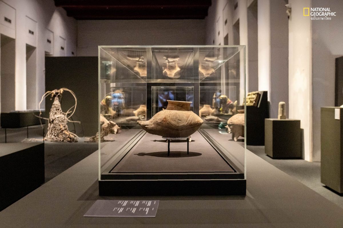 ภายในอาคารศิวโมกขพิมาน ที่พิพิธภัณฑสถานแห่งชาติพระนคร หรือวังหน้า เป็นสถานที่จัดแสดงวัตถุโบราณของกรมศิลปากร แต่ช่วงนี้พื้นที่แห่งนี้ได้มีส่วนผสมของเทศกาลศิลปะ Bangkok Art Biennale 2024 ผสานเข้าไป หากได้ไปชม ความคิดที่เดินทางไปมาระหว่างงานศิลปะสมัยใหม่และโบราณวัตถุที่สลับวาง ทับซ้อนกัน อย่างศิลปินที่ได้รับเชิญมาจัดแสดงผลงานที่นี่เลือกจัดวางได้อย่างแนบเนียนไปกับศิลปะวัตถุยุคก่อนประวัติศาสตร์ ชวนไปผู้เข้าชมเชื่อมร้อยเรื่องราวของแต่ละยุคสมัยเข้าหากันด้วยจินตนาการที่เกิดจากประสบการณ์ของตัวเอง หากคุณเดินชมผลงานศิลปะยุคก่อนประวัติศาสตร์ที่เป็นเครื่องปั้นดินเผารูปวัว แล้วถัดไปอีกหน่อยก็อาจเจอกับโมเดลของ ‘หมูเด้ง‘ ซึ่งเป็นรูปทรงของสัตว์เหมือนกัน ด้วยเหตุแห่งการก่อเกิดงานศิลป์ที่คล้ายกัน แต่มาจากคนละยุค คนละบริบทช่วงเวลาโดยสิ้นเชิง
