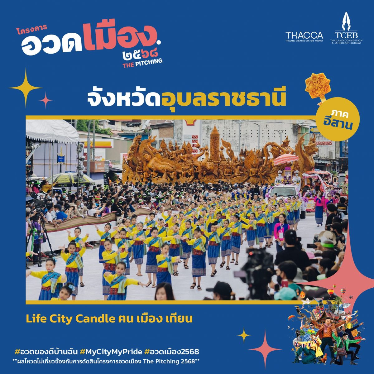 ในทุกๆ ปี ชาวอุบลราชธานีหลากสายอาชีพ หลากหลายช่วงวัย จะช่วยกันเตรียมงานแห่เทียนเป็นระยะเวลาร่วมเดือน จังหวะชีวิตที่สอดประสานกับการทำเทียนสร้างบรรยากาศทั้งเมืองให้เปี่ยมเสน่ห์ ที่เมื่อใครได้สัมผัสก็ยากจะลืมเลือน และในอนาคตข้างหน้า คนจะไม่ได้รู้จัก ”เทียน” จากในแง่ของความศรัทธาและขบวนแห่สวยงามเท่านั้น แต่จะรู้จักจากเมืองอุบลราชธานีทั้งเมือง เป็นผู้เล่าเรื่องราววัฒนธรรมที่พวกเขารักด้วยตัวเอง ผ่านไอเดียอวดเมือง “Life City Candle”