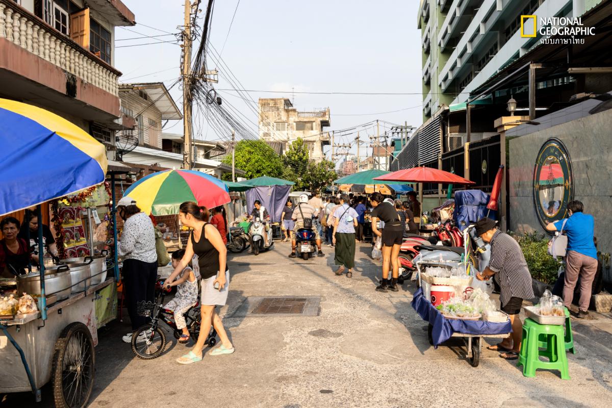 ทุกเสาร์-อาทิตย์ สองข้างทางจะเต็มไปด้วยแผงค้าชั่วคราวและรถเข็นขายอาหารสัญชาติไทย-ญวน