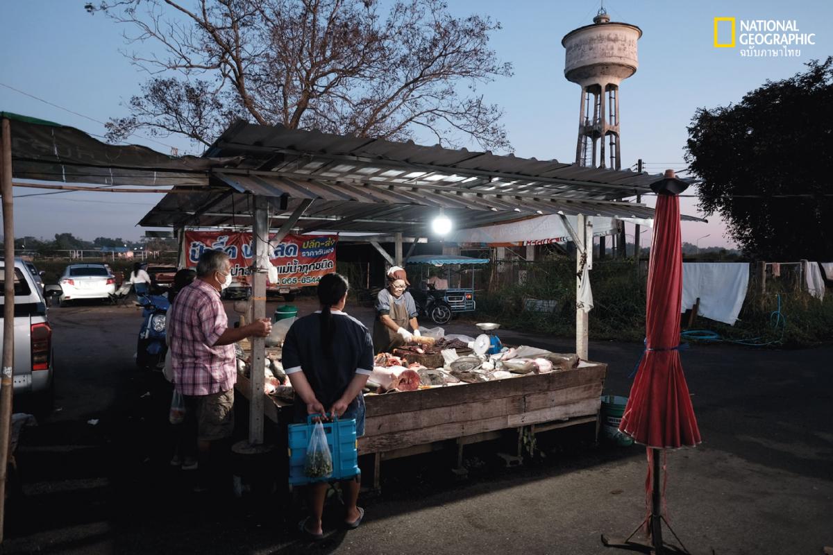 แผงขายปลาที่ตลาดปลาเขื่อนเจ้าพระยา จังหวัดชัยนาท ทุกเช้าจะเต็มไปด้วยปลาหลากชนิดหลายขนาดทำให้วัฒนธรรมการกินปลาร้าของที่นี่จะใช้ปลาใหญ่มาทำด้วย ต่างจากพื้นที่ห่างไกลแม่น้ำ ซึ่งนิยมใช้ปลาเล็กปลาน้อยมาทำปลาร้า