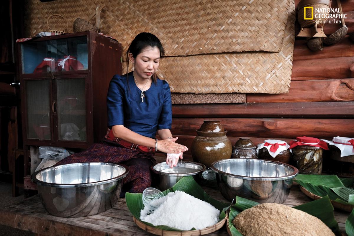 “หลังทำความสะอาดปลาเสร็จ พักให้ปลาสะเด็ดน้ำดี คลุกกับเกลือครึ่งหนึ่ง แล้วนำไปตากข้ามวันข้ามคืนก่อนจึงนำมาคลุกกับเกลือที่เหลือและข้าวคั่ว โดยเลือกใช้ข้าวจากนาที่ดอนซึ่งครอบครัวของคำนางปลูกเอง