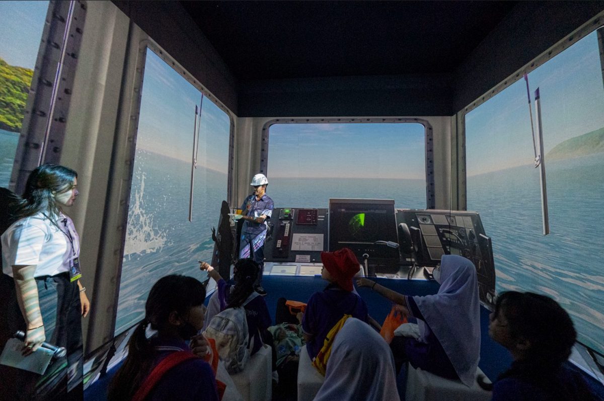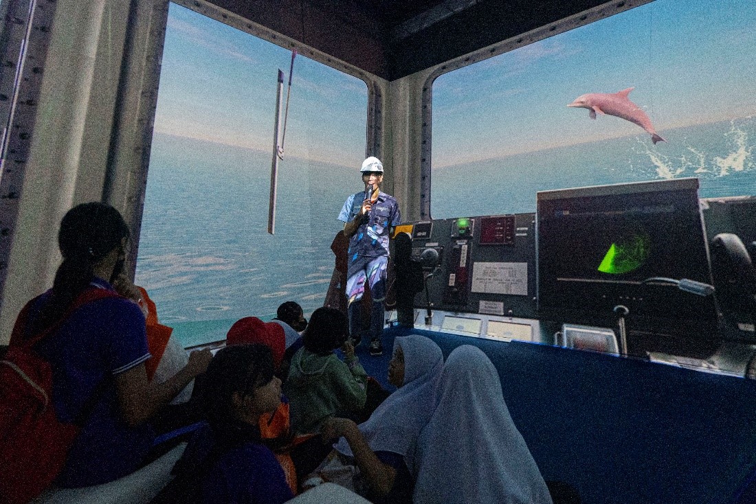 จากโซนที่ 1 เดินเข้ามากันต่อในโซนที่ 2 ซึ่งเอ็กโก กรุ๊ป ได้เตรียมนิทรรศการที่น่าตื่นตาตื่นใจ โดยการพาผู้เข้าชม “ขึ้นเรือ” โรงไฟฟ้าเรือลอยน้ำ อ.ขนอม จ.นครศรีธรรมราช ไปพร้อมกับนายช่างโรงไฟฟ้า ผ่านโรงหนังในรูปแบบ Immersive Theater 270 องศา ที่เล่าเรื่องราวการเปลี่ยนผ่านด้านพลังงานของประเทศไทย ตั้งแต่อดีต ปัจจุบัน และอนาคต ที่มุ่งสู่สังคมคาร์บอนต่ำ