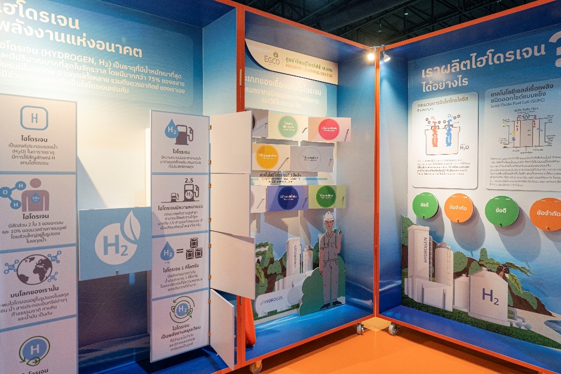 ในนิทรรศการนี้ เอ็กโก กรุ๊ป จะพาน้อง ๆ ไปรู้จักกับนวัตกรรมพลังงานสะอาดที่มีความสำคัญต่อการเปลี่ยนผ่านด้านพลังงานไปสู่โลกอนาคตอย่าง “พลังงานหมุนเวียน” และ “ไฮโดรเจน” โดยเฉพาะไฮโดรเจนที่เป็นพลังานทางเลือกใหม่ ซึ่งสามารถผลิตพลังงานสะอาดได้อย่างมีเสถียรภาพและเริ่มได้รับความนิยมทั่วโลก ผู้ชมจะได้เรียนรู้เรื่องพลังงานไฮโดรเจนหลากหลายประเภทที่มีกระบวนการผลิตและสร้างพลังงานแตกต่างกัน รวมไปถึงความสำคัญของไฮโดรเจนในฐานะ “พลังงานสะอาดแห่งอนาคต”