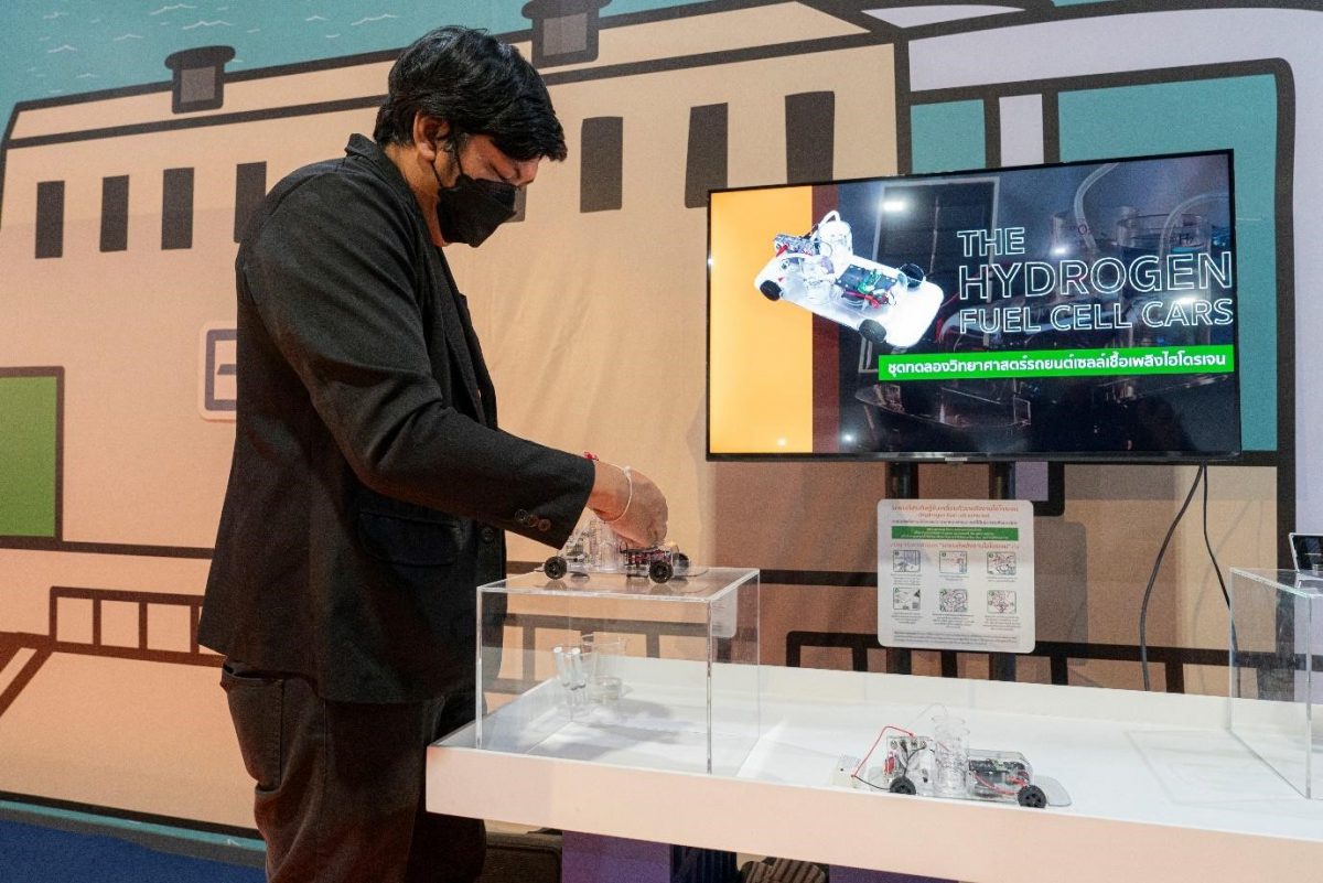 นอกจากนี้ ยังมีการสาธิตรถยนต์ประดิษฐ์ขับเคลื่อนด้วยพลังงานไฮโดรเจน (Hydrogen fuel cell vehicles) ที่เป็นมิตรต่อสิ่งแวดล้อม ด้วยแนวคิด “มาสนุกกับการทดลองรถยนต์พลังงานไฮโดรเจนกัน” ซึ่งจะให้น้อง ๆ ได้ลองนำพลังงานไฮโดรเจนที่สกัดมาจากน้ำ ไปใช้ขับเคลื่อนรถยนต์คันเล็ก ๆ ทำให้เห็นภาพการทำงานของพลังงานไฮโดรเจนและสัมผัสถึงแนวโน้มที่พลังงานไฮโดรเจนจะมาอยู่ใกล้ตัวเรามากขึ้น