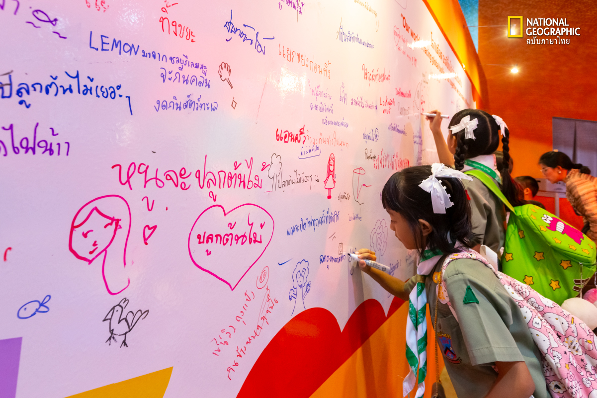 ซึ่งสุดท้ายปลายทางของนิทรรศการห้องนี้จะพาเด็ก ๆ มารู้จักกับแนวทางที่อาจช่วยให้ธรรมชาติกลับมาทำหน้าที่ของมันได้อีกครั้ง ผ่านแนวคิด Nature-based Solutions เช่น การปลูกป่า อนุรักษ์น้ำ และฟื้นฟูระบบนิเวศ เพื่อให้เด็ก ๆ เห็นว่าพวกเขาก็สามารถเป็นส่วนหนึ่งของการเปลี่ยนแปลงนี้ได้เช่นกัน ให้เด็ก ๆ ก่อนจะจบลงด้วยการให้เด็ก ๆ ฝากไอเดียของพวกเขาลงบนบอร์ดขนาดใหญ่ ว่าพวกเขาจะมีวิธีในการเปลี่ยนแปลงโลกนี้ให้ดีขึ้นอย่างไร