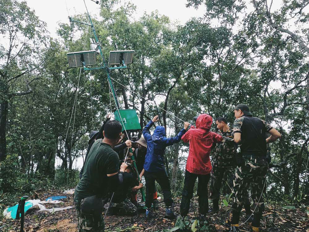 เสาสัญญาณต้องติดตั้งในพื้นที่ที่สูงที่สุดในผืนป่าแห่งนั้นและต้องไม่มีต้นไม้บัง ผืนป่าที่ทดลองติดตั้งอุปกรณ์นี้อยู่ที่จังหวัดแพร่ ซึ่งได้รับผลกระทบจากไฟป่าเป็นลำดับต้นๆ เส้นทางเดินป่าเป็นภูเขาสูงชัน การเดินทางแบกสัมภาระขึ้นไปนั้นเป็นไปอย่างยากลำบาก ด้วยระยะทางจากพื้นราบขึ้นสู่ยอดเขา 3.5 กิโลเมตร บนความสูง 1,060 เมตรจากระดับทะเล แต่ทีมงานก็ลงมือทำทั้งที่ยังไม่รู้ว่าจะประสบผลสำเร็จหรือไม่ สองคืนสามวันท่ามกลางสายฝนที่ตกโปรยปรายอยู่ตลอดเวลา กลุ่มคนหนุ่มสาวรุ่นใหม่เหล่านี้กลับมีความมุ่งมั่นตั้งใจอยากให้ระบบนิเวศของบ้านเราดีขึ้น ทั้งที่พวกเขาไม่มีประสบการณ์เข้าไปใช้ชีวิตอยู่ท่ามกลางป่าลึกกันมาก่อน แต่ก็ผ่านกันมาได้ บอกได้เลยว่านับถือในน้ำใจจริงๆ