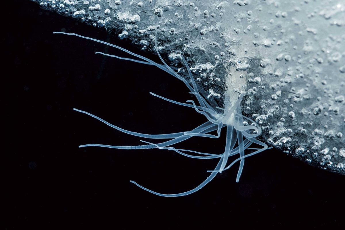อีกวันหนึ่ง ชองตีลก็เรียกให้ผมดูทุ่งดอกไม้ทะเลโปร่งแสงตัวจิ๋วๆ ที่เกาะห้อยลงมาจากแพนํ้าแข็ง พวกมันฝังตัวลึกเข้าไปสองสามเซนติเมตรในนํ้าแข็งที่เหมือนหิน หนวดของพวกมันที่มีแสงอาทิตย์ส่องผ่าน โบกพัดอยู่ในกระแสนํ้า ดูคมและแวววาว พวกมันช่างตราตรึงใจยิ่งนักโลกใต้นํ้าแข็งแอนตาร์กติกก็เหมือนกับเมานต์เอเวอเรสต์ เพราะงดงามน่าอัศจรรย์ แต่ขณะเดียวกันก็อาจโหดร้ายทารุณ