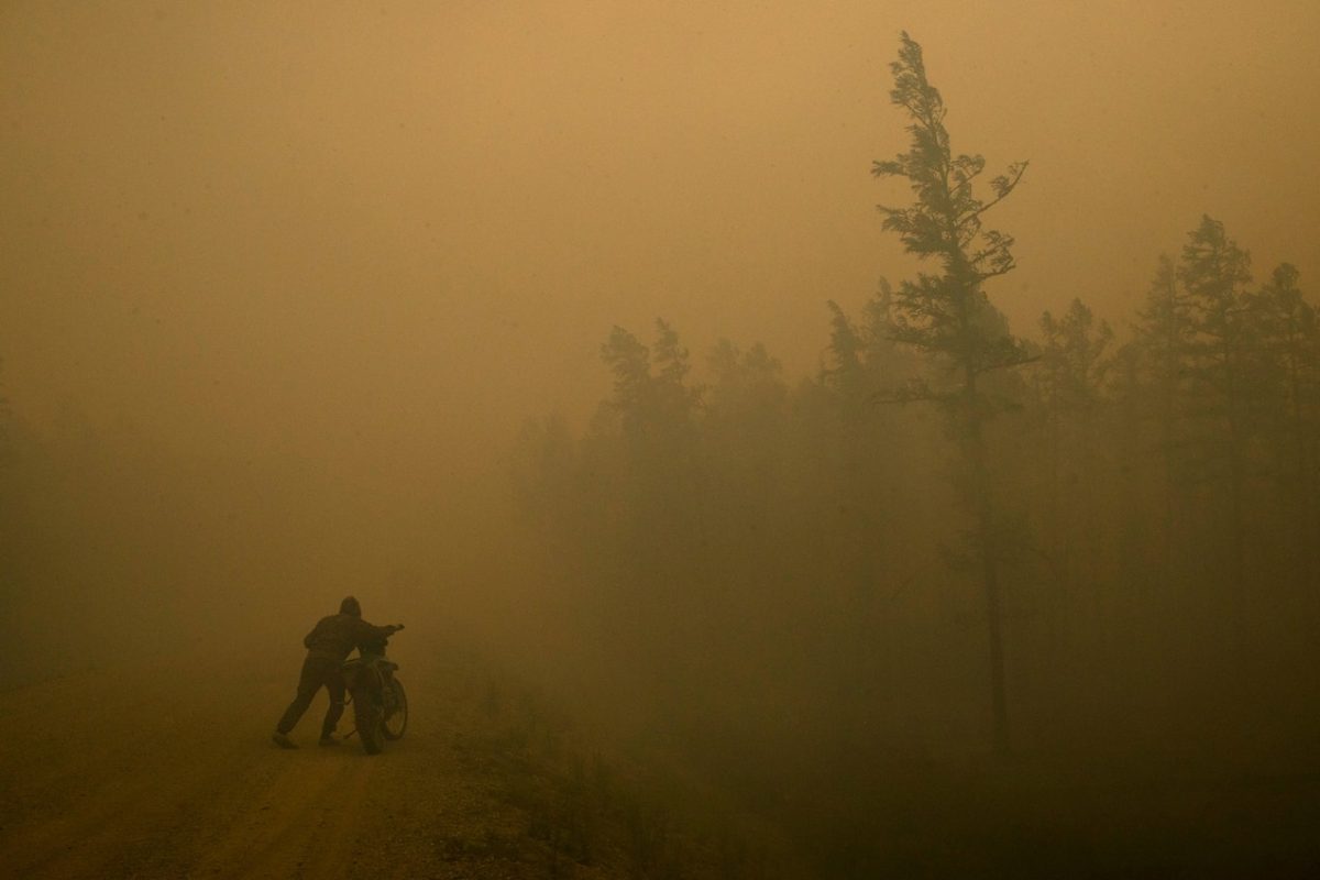 ในเคอเรลยา รัสเซีย อาสาสมัครนักดับเพลิงวัย 37 ปีชื่อว่า Oleg Shcherbakov กำลังขับรถมอเตอร์ไซค์ฝ่ากลุ่มควันหนาทึบ ในขณะที่ออกเดินทางไปดับเพลิงยังพื้นที่ที่อยู่ห่างออกไปไม่ถึง 400 เมต