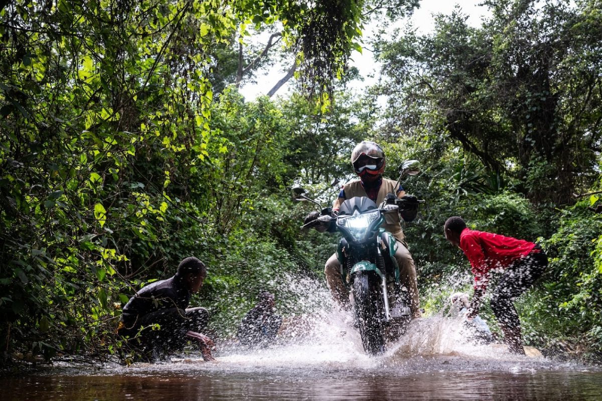 ในไนโรบี เคนยา John Chege และ Amos Kimani ออกลาดตระเวนป่า Karura ซึ่งเป็นป่าขนาดใหญ่ของเมือง พวกเขาขี่มอเตอร์ไซค์ไฟฟ้ารุ่นใหม่ที่พึ่งเปิดตัวเป็นส่วนหนึ่งของโครงการนำร่องเพื่อลดมลพิษทางอากาศ ปรับปรุงความมั่นคงด้านพลังงานของประเทศ และสร้างงานที่เป็นมิตรกับสิ่งแวดล้อม เสียงเครื่องยนต์เดินเงียบคือความเปลี่ยนแปลงที่น่ายินดีสำหรับผู้มาเยือนป่า ซึ่งครั้งหนึ่งการเดินอย่างสงบสุขถูกรบกวนด้วยเสียงเครื่องยนต์เสียงดังและควันพิษจากเครื่องยนต์ดีเซล