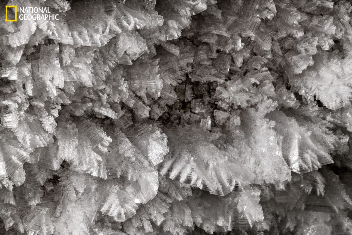 น้ำแข็งย้อยลงมาจากเพดานถ้ำเหมือนน้ำตกจับตัวเป็นน้ำแข็ง และพอกขึ้นจากพื้นเป็นหอสูงตามทางเดินยาวเป็นร้อยเมตร ผลึกน้ำแข็งและน้ำแข็งย้อยทอประกายเหมือนเพชรพลอยล้ำค่าอยู่ตามผนัง