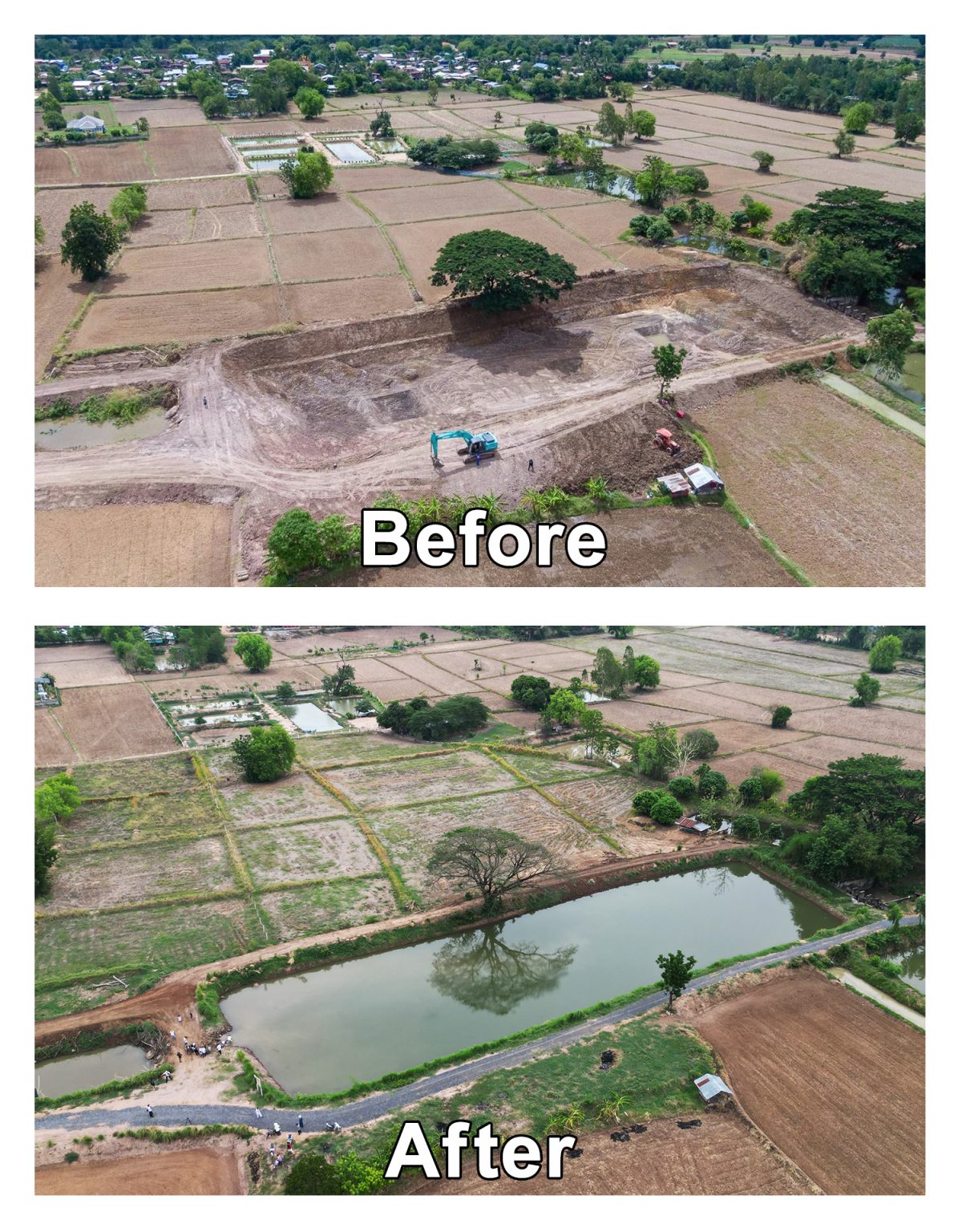 “ในหน้าแล้ง ชุมชนแห่งนี้จะไม่ขาดน้ำอีกต่อไป เพราะว่าที่นี่จะมีน้ำจากระดับน้ำใต้ดินขึ้นมา จากเดิมที่ฝนตกมาเยอะๆ ในปีที่มีลานีญาจนเกิดน้ำท่วมแล้วล้นออกไป ก็จะทำให้เก็บน้ำได้มากขึ้น ลดผลกระทบจากการเกิดน้ำล้นออกไปท่วมขังพื้นที่ของชุมชนได้มาก เพราะฉะนั้น หากเกิดเอลนีโญ่ที่ที่เป็นภัยแล้ง บ่อแห่งนี้ก็จะกักเก็บน้ำไว้ใช้ได้มากขึ้น หรือต่อให้เป็นปีที่เกิดลานีญา ซึ่งเป็นปีที่มีน้ำเยอะ ก็จะช่วยลดผลกระทบที่จะเกิดขึ้นของน้ำหลากที่จะออกไปท่วมบนพื้นที่ชุมชนและเกษตรชุมชน โดยทั้งบ่อเปิดและบ่อปิดซึ่งเราทำควบคู่กันจะเพิ่มศักยภาพการกักเก็บน้ำไว้ในพื้นที่ให้ยาวนานมากยิ่งขึ้น”