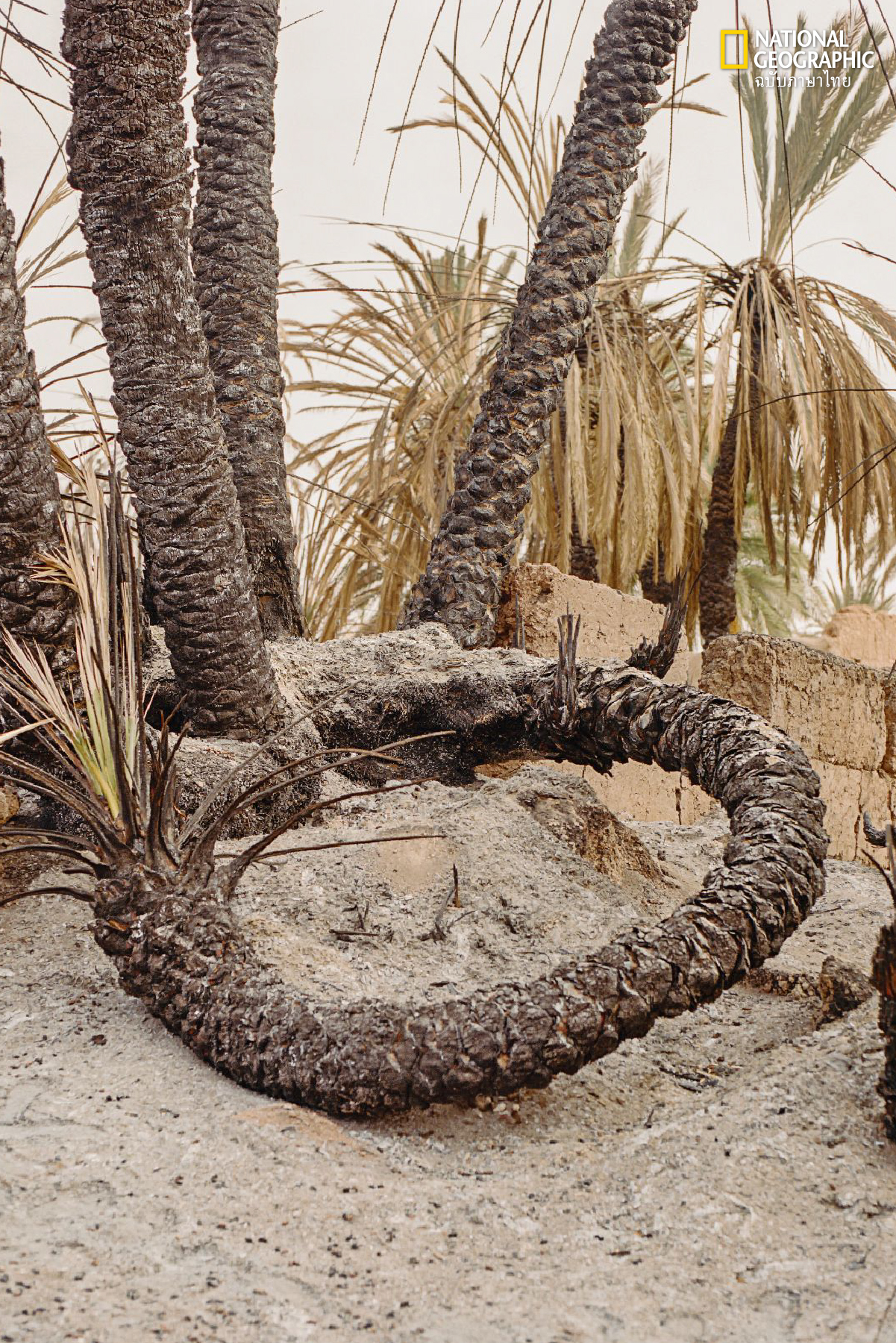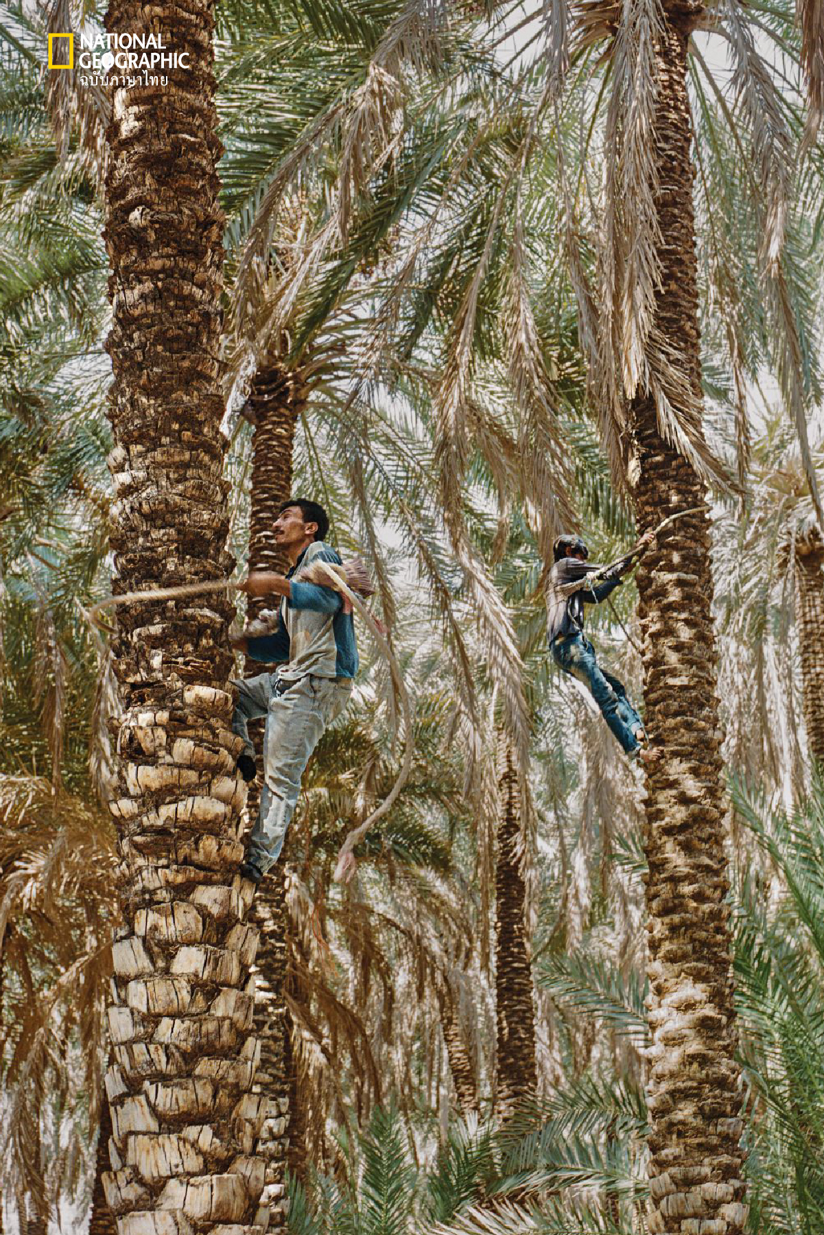 มุฮัมมัด เอ-เตล-ม็อกห์ตาร์ ศาสตราจารย์ด้านสรีรวิทยาพืชและเทคโนโลยีชีวภาพที่มหาวิทยาลัยฮัสซันที่สองในเมืองคาซาบลังกา ซึ่งเคยศึกษาผลกระทบของการเปลี่ยนแปลงสภาพภูมิอากาศต่อระบบนิเวศโอเอซิส พูดถึงต้นปาล์มอินทผลัมว่าเป็นเหมือน “ร่ม” ช่วยให้ทุกสิ่งที่อยู่เบื้องล่างเจริญงอกงามได้ “ถ้าเราอยากรักษาโครงสร้างนี้ไว้ในโอเอซิส เราต้องรักษาปาล์มอินทผลัมไว้ครับ” เขาบอก