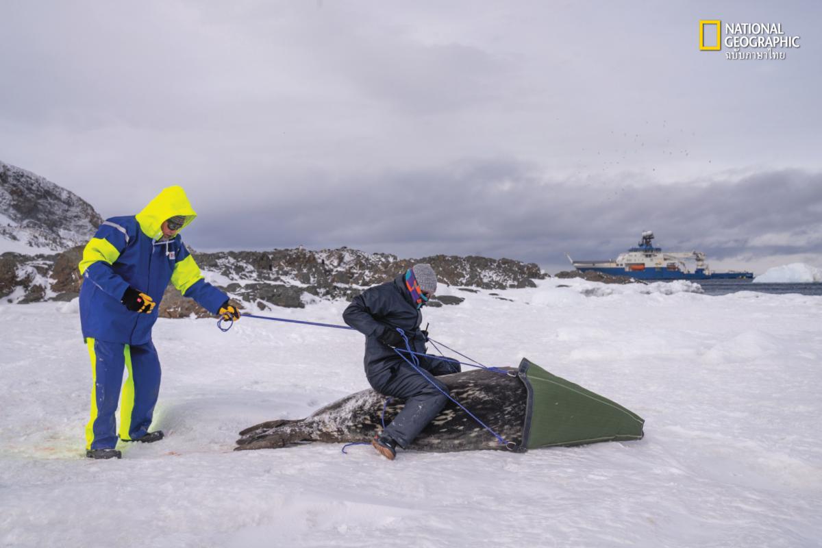 ยังเกอร์และทีมนักวิทยาศาสตร์มุ่งหน้าไปยังตำแหน่งสุดท้ายที่แมวน้ำตาย ทีมนี้เป็นส่วนหนึ่งของโครงการสำรวจมหาสมุทรเพื่อโลกที่ยั่งยืนของเนชั่นแนล จีโอกราฟฟิกและโรเล็กซ์ ซึ่งมุ่งส่งนักวิจัยไปศึกษามหาสมุทรทั้งห้าของโลก หลังจากใช้เวลาเดินเรือสามวันครึ่งในน่านน้ำที่เต็มไปด้วยน้ำแข็งเมื่อเดือนธันวาคมปีก่อน พวกเขาก็มาถึง แต่เมื่อถึงตอนนั้น ทุกอย่างเปลี่ยนไปแล้ว ขอบน้ำแข็งแตกออกเป็นชิ้นเล็กชิ้นน้อย ทำให้การค้นหาพื้นที่กว้างใหญ่ด้วยเรือนั้นไร้ประโยชน์ พวกเขาจึงปล่อยโดรนขึ้น