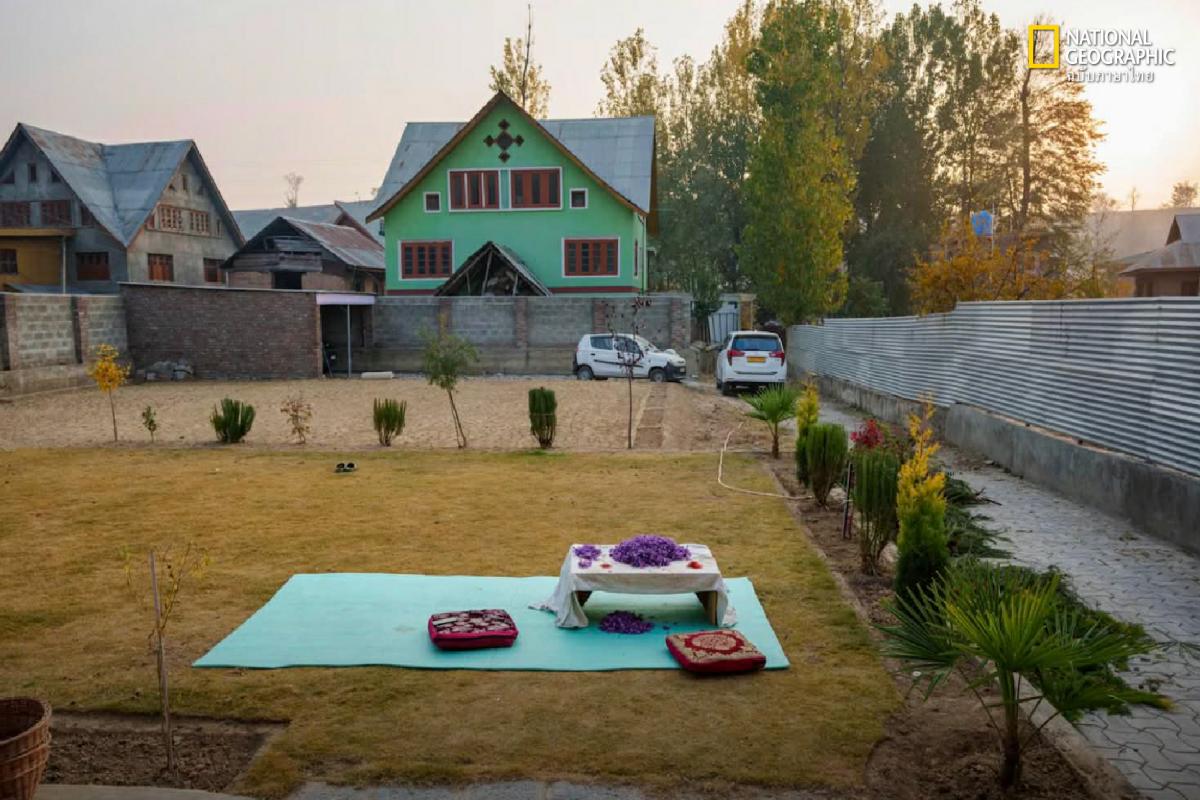 ภายใต้กลิ่นอบอวลของชาหญ้าฝรั่น ครอบครัวได้พูดคุยกันถึงเรื่องเครื่องเทศ สภาพอากาศที่เปลี่ยนแปลง และความยากลำบากของการใช้ชีวิตในดินแดนพิพาทอย่างแคชเมียร์ ซึ่งมักถูกพาดหัวข่าวไปทั่วโลกในแง่ของความรุนแรงและลัทธิสุดโต่ง