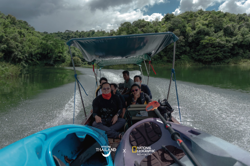 เรือหางยาวลำนี้พาเราออกจากที่พักที่บ้านแม่น้ำ แล่นผ่านสามประสบ ผ่านจุดสกัดทางน้ำปากห้วยบิคลี่เข้าสู่ช่องเขาที่เต็มไปด้วยแมกไม้ชะอุ่มเขียวและไม่คดเคี้ยวมากนัก ผ่านจุดที่ชาวบ้านเรียกกันว่า “ศาลเจ้าพ่อประตูเมือง” จนไปเจอทุ่งมาลัย ทุ่งกว้างที่เต็มไปด้วยต้นไมยราพที่จมอยู่ใต้ผิวน้ำ ซึ่งเมื่อเข้าสู่ฤดูแล้งที่น้ำแห้งเหือด นอกจากกิ่งก้านสาขาของไมยราพจะโผล่พ้นน้ำอีกคราว ผืนดินบริเวณนี้ยังจะกลายเป็นจุดที่ชาวบ้านมักพาวัวออกมากินหญ้าเกิดเป็นห่วงโซ่ของระบบนิเวศ