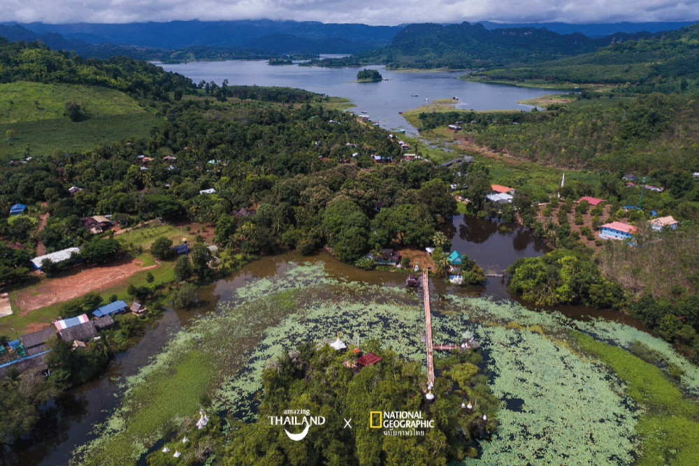นอกจากนอนเต็นท์ในคืนฝนพรำจนถึงเช้า (ชื้นนิด ๆ แต่ว่าตอนเช้าตื่นมาอากาศดีสุด ๆ) คืนต่อมาเราขอเปลี่ยนไปนอนแพบ้าง เพื่อง่ายต่อการพายคายัคไปดูพระอาทิตย์ตกจากกลางเขื่อน แล้วปิดท้ายทริปนี้ด้วยการลงเรือล่องท่องวัฒนธรรม เที่ยวบ้านโบอ่องที่อยู่ลึกเข้าไปช่วงกลางเขื่อนวชิราลงกรณ หนึ่งในสถานที่ท่องเที่ยว Unseen ของกาญจนบุรี