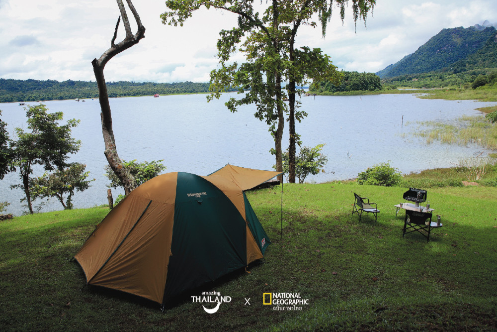 พวกเราเลือกจุดกางเต็นท์ใกล้กับบ้านพักของเจ้าหน้าที่ ซึ่งเป็นจุดที่มองเห็นทั้งภูเขาและอ่างเก็บน้ำได้ชัด (ที่จริงวิวส่วนใหญ่ก็เห็นทั้งเขาและเขื่อนนั่นแหละ) แต่เราเลือกจุดนี้ด้วยสองเหตุผล หนึ่งคือสวยโดนใจ กับสองคือใกล้กลับท่าน้ำเพื่อง่ายต่อการนำเรือคายัคลงไปพายในอ่างเก็บน้ำ สำหรับสายกิจกรรมทางน้ำแล้ว ที่นี่นับว่าทำเลเหมาะมากหากใครมีเรือคายัคหรือ SUP ติดรถมาด้วย