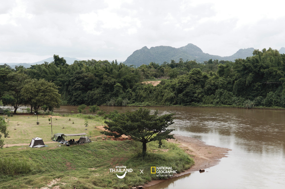 “ที่วังโพแคมป์ปิ้ง มีลานกางเต็นท์ติดริมน้ำแม่น้ำแคว ที่นี่มีช้างด้วยนะ ตอนกลางวันเล่นน้ำกับช้าง ตกกลางคืนนอนดูดาว ตอนเช้าตื่นมาแช่น้ำสบายใจ ได้ใกล้ชิดธรรมชาติแบบสุด ๆ”