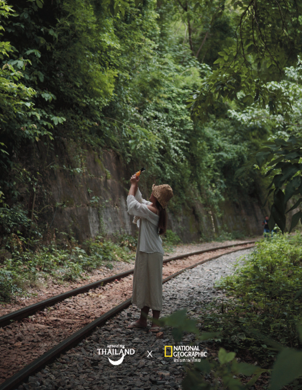 “เราสองคนเลือกไปเดินเล่นตามเส้นทางรถไฟสายมรณะ ทางรถไฟที่ข้างหนึ่งเป็นภูเขาสูง อีกข้างหนึ่งเป็นเหวติดลำน้ำ หวาดเสียวนิดหน่อย พอให้หัวใจเต้นตุ๊บๆ (หัวเราะ) ซึ่งช่วงหน้าฝนบรรยากาศชุ่มฉ่ำ เขียวสดชื่นแบบสุด ๆ สองข้างทางร่มรื่น น่าแวะมาเที่ยวมาก ๆ มีที่จอดรถ มีร้านค้าขายของ มีถ้ำให้ได้เที่ยว และไหว้พระกันด้วยเน้อ”