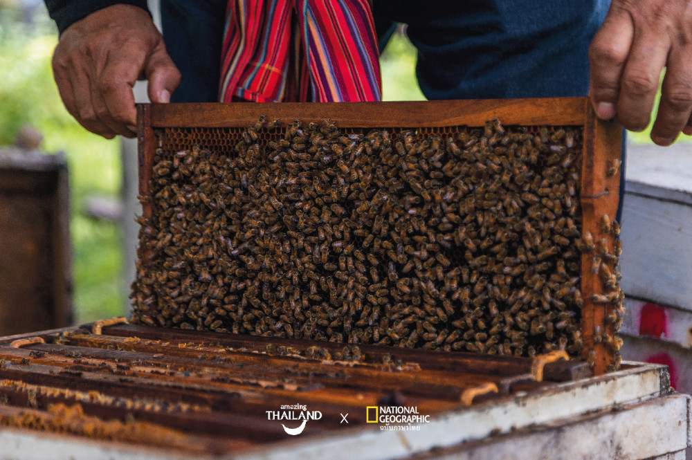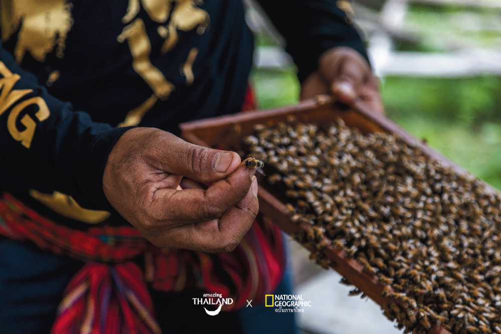 นอกจากผึ้งกล่องจะกันช้างป่าได้แล้ว ยังมีประโยชน์อย่างใหญ่หลวงอีกอย่างก็คือ ‘น้ำผึ้ง’ จากโครงการผึ้งกล่อง ที่ทำให้ชุมชนมีรายได้เลี้ยงชีพตนเองอีกด้วย