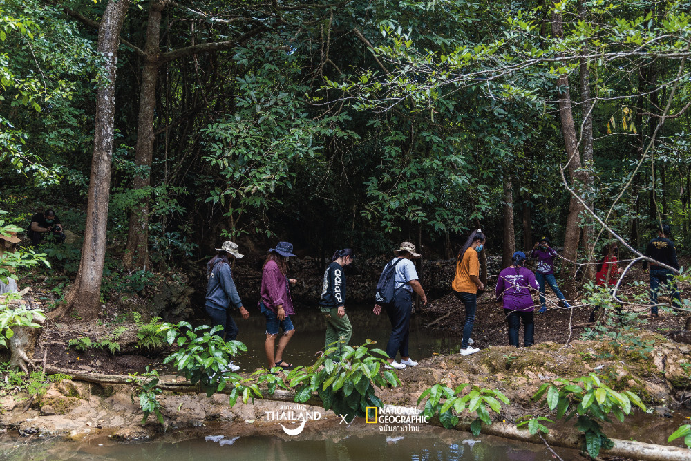 กิจกรรมที่ 3 สำรวจ ‘เส้นทางศึกษาธรรมชาติ’ อย่างที่เราทราบกันในเบื้องต้นว่าชุมชนแห่งนี้ค่อนข้างจะอยู่ใกล้ชิดธรรมชาติ ธรรมชาติก็เป็นส่วนหนึ่งของชุ่มชน ต่างก็พึ่งพาอาศัยกัน ชาวบ้านที่นี่ก็มีหน้าที่ดูแลป่า ช่วยกันบำรุงรักษาพื้นป่าแห่งนี้ นั่นก็ทำให้ป่าแห่งนี้อุดมสมบูรณ์ จึงมักจะมีสัตว์ป่าลงมาหากินอยู่บ่อย ๆ แต่ต้องบอกก่อนนะ กิจกรรมเดินป่าศึกษาธรรมชาติไม่ได้น่ากลัวอย่างที่คิดนะ (หัวเราะ) เพื่อน ๆ ไม่ต้องกลัวน้อง ๆ ลงมาหากินหรอก เพราะน้อง ๆ จะมาตอนดึก ๆ นู้นนน!