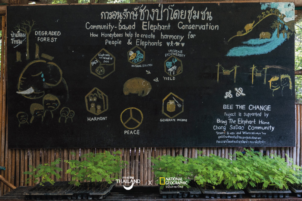 ลุงกำนันแกก็ได้ไอเดียบางอย่างที่แกเคยได้ไปศึกษาดูงาน โครงการรั้วรังผึ้ง ณ เขตรักษาพันธุ์สัตว์ป่าภูหลวง อำเภอภูเรือ จังหวัดเลย โดยการนำผึ้งกล่องมาเลี้ยงเป็นแนวรั้วในจุดที่ช้างลงมาหากิน เมื่อช้างมายังบริเวณนี้ มันก็มักจะเดินมาชนแนวกล่องผึ้ง ฝูงผึ้งนับหมื่น ๆ ตัวก็ออกมารุมต่อยเจ้าช้าง ครั้งต่อไปเจ้าช้างก็จะไม่มารบกวนพื้นที่ชุมชนอีก ถือว่าเป็นไอเดียที่ดีมาก