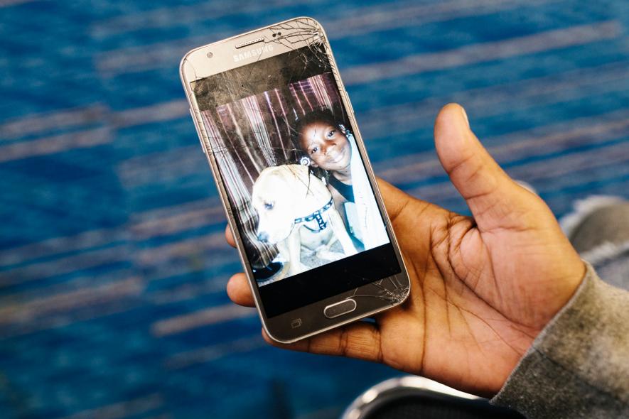 เตียมบรีให้ดูภาพถ่ายสุนัขของพวกเขาซึ่งหายไปในระหว่างน้ำท่วม