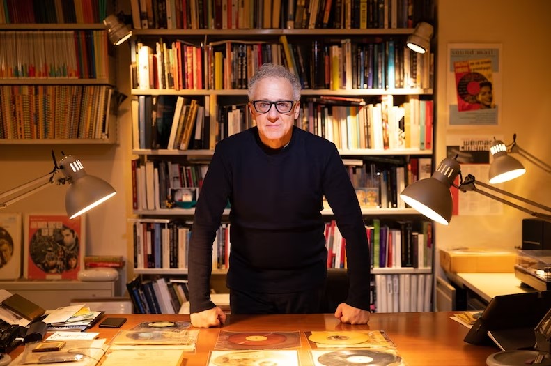 ห้องทำงานของเลอวินอัดแน่นไปด้วยสิ่งของต่างๆ ที่เขารวบรวมสะสมมาตลอดหลายปี รวมถึงหนังสือ โปสเตอร์ และสิ่งของสำหรับการใช้งานชั่วคราวอื่นๆ — และแน่นอนว่าต้องมีบันทึกเสียง จนถึงขณะนี้ เขาแปลงบันทึกเสียงกว่า 3,000 ฉบับเป็นข้อมูลดิจิทัล และแผ่นบันทึกทั้งหมดนั้นถูกเก็บในแฟ้มพลาสติกใสและจำแนกอย่างจัดเจน เขาเก็บพวกมันในตู้และถังเก็บซึ่งวางเป็นชั้นได้ในห้องควบคุมอุณหภูมิ