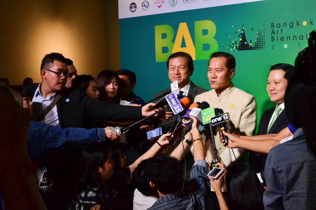 คุณฐาปน สิริวัฒนภักดี กรรมการผู้อำนวยการใหญ่ บริษัท ไทยเบฟเวอเรจ จำกัด (มหาชน) กล่าวว่า “ในนามประธานกรรมการ ผู้ร่วมก่อตั้งมูลนิธิ “บางกอก อาร์ต เบียนนาเล่ 2018” เราตระหนักถึงความสำคัญของการส่งเสริมให้เกิดความเชื่อมโยงในด้านการท่องเที่ยวในเชิงศิลปะ และวัฒนธรรมไทย โดยงาน “บางกอก อาร์ต เบียนนาเล่” หรือ BAB ถือเป็นโครงการสำคัญที่จัดขึ้นมาเพื่อเนรมิตให้กรุงเทพมหานครกลายเป็นศูนย์กลางแห่งการท่องเที่ยว ที่สำคัญทางด้านศิลปะร่วมสมัยในอันดับต้นๆ ของโลก และเป็นจุดหมายของนักเดินทางผู้รักงานศิลปะจากทั่วโลก ซึ่งถือเป็นการจัดขึ้นครั้งแรกของกรุงเทพมหานคร ที่เกิดขึ้นจากการผสานความร่วมมือครั้งสำคัญทั้ง จากภาครัฐ และเอกชน ไม่ว่าจะเป็น กระทรวงการท่องเที่ยวและกีฬา กรุงเทพมหานคร การท่องเที่ยวแห่งประเทศไทย สถานทูตต่างประเทศประจำประเทศไทย และเครือข่ายพันธมิตรทุกภาคส่วนที่ร่วมสนับสนุนการจัดงานในครั้งนี้