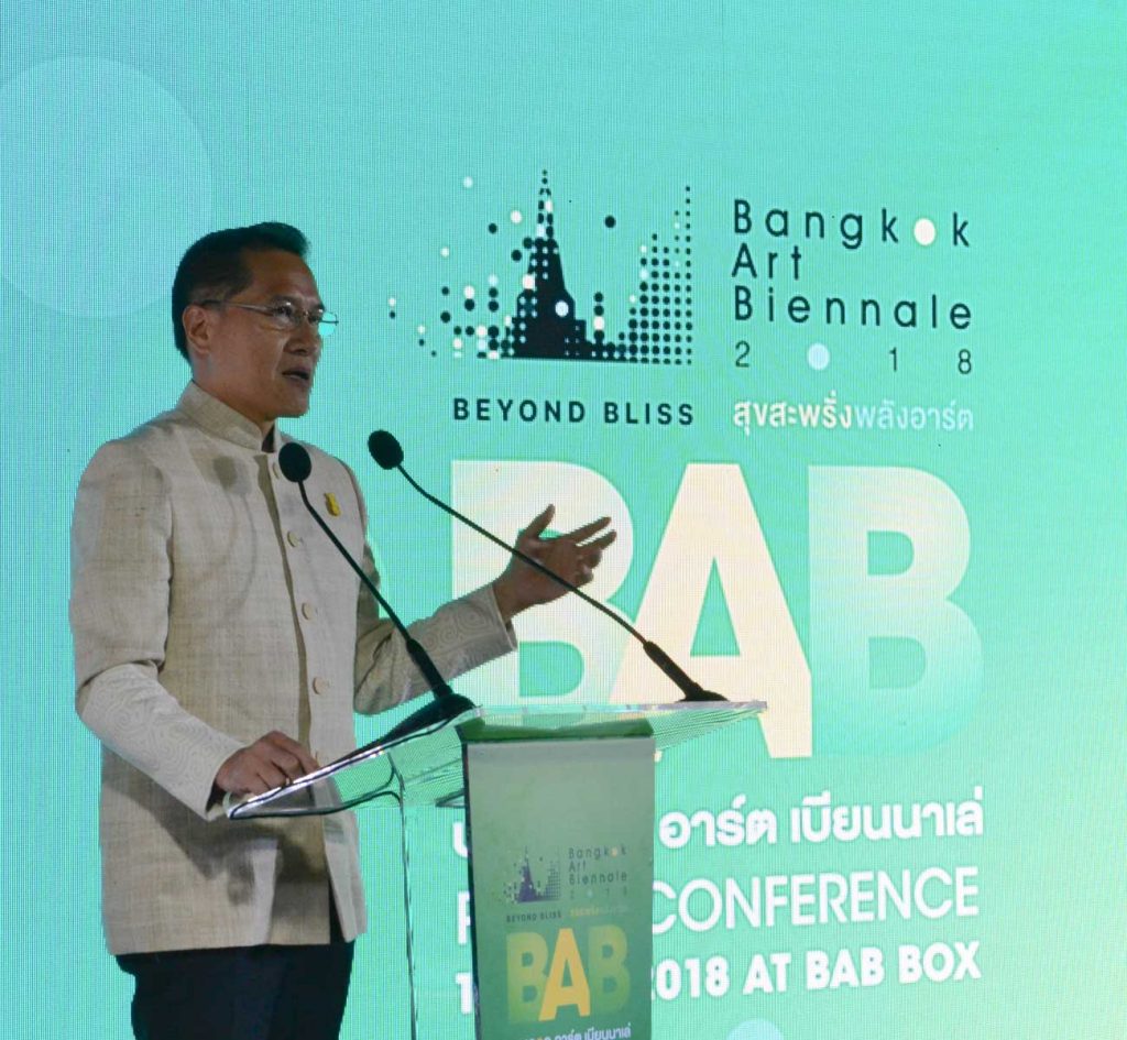 คุณวีระศักดิ์ โควสุรัตน์ รัฐมนตรีว่าการกระทรวงการท่องเที่ยวและกีฬา กล่าวว่า “บางกอก อาร์ต เบียนนาเล่ 2018 ถือเป็นงานศิลปะร่วมสมัยที่มีความยิ่งใหญ่ระดับโลก ที่จะทำให้กรุงเทพมหานคร กลายเป็นศูนย์กลางความเชื่อมโยงแห่งเมืองศิลปวัฒนธรรม และกลายเป็นแหล่งท่องเที่ยวติดอันดับต้นๆ ที่เป็นจุดหมายปลายทางของนักเดินทางจากทั่วทุกมุมโลกให้ต้องเดินทางมาเที่ยวชม ทั้งงาน “บางกอก อาร์ต เบียนนาเล่” รวมไปถึงแหล่งท่องเที่ยวที่เป็นสถานที่สำคัญซึ่งเป็นมรดกทางวัฒนธรรม และประวัติศาสตร์อันทรงคุณค่าอีกมากมาย โดยเฉพาะ “วัดโพธิ์” หนึ่งในสถานที่ ที่จะมีการจัดแสดงงาน “บางกอก อาร์ต เบียนนาเล่” ที่เพิ่งถูกโหวตจาก “ทริปแอดไวเซอร์” เว็บไซต์ท่องเที่ยวรายใหญ่ที่สุดในโลกให้เป็นสถานที่ท่องเที่ยวสำคัญยอดนิยมของโลกอันดับที่ 17 และอันดับที่ 3 ในภูมิภาคเอเชีย ขยับจากอันดับที่ 4 แซงหน้ากำแพงเมืองจีนที่เคยครองแชมป์อันดับที่ 3 มาโดยตลอด และก็ยังเป็นสถานที่ท่องเที่ยวสำคัญอันดับ 1 ของประเทศไทย เป็นเรื่องน่ายินดีที่งานนี้ เกิดขึ้นจากความร่วมมือกันของหลายภาคส่วน โดยมีภาคเอกชนที่เป็นหัวเรือใหญ่อย่าง บริษัท ไทยเบฟเวอเรจ จำกัด (มหาชน) และอีกหลายองค์กร ที่ให้ความสำคัญกับเรื่องการส่งเสริมการท่องเที่ยวเชิงศิลปวัฒนธรรมอยู่แล้ว มาช่วยเป็นแกนหลักในการขับเคลื่อนการจัดงานครั้งนี้